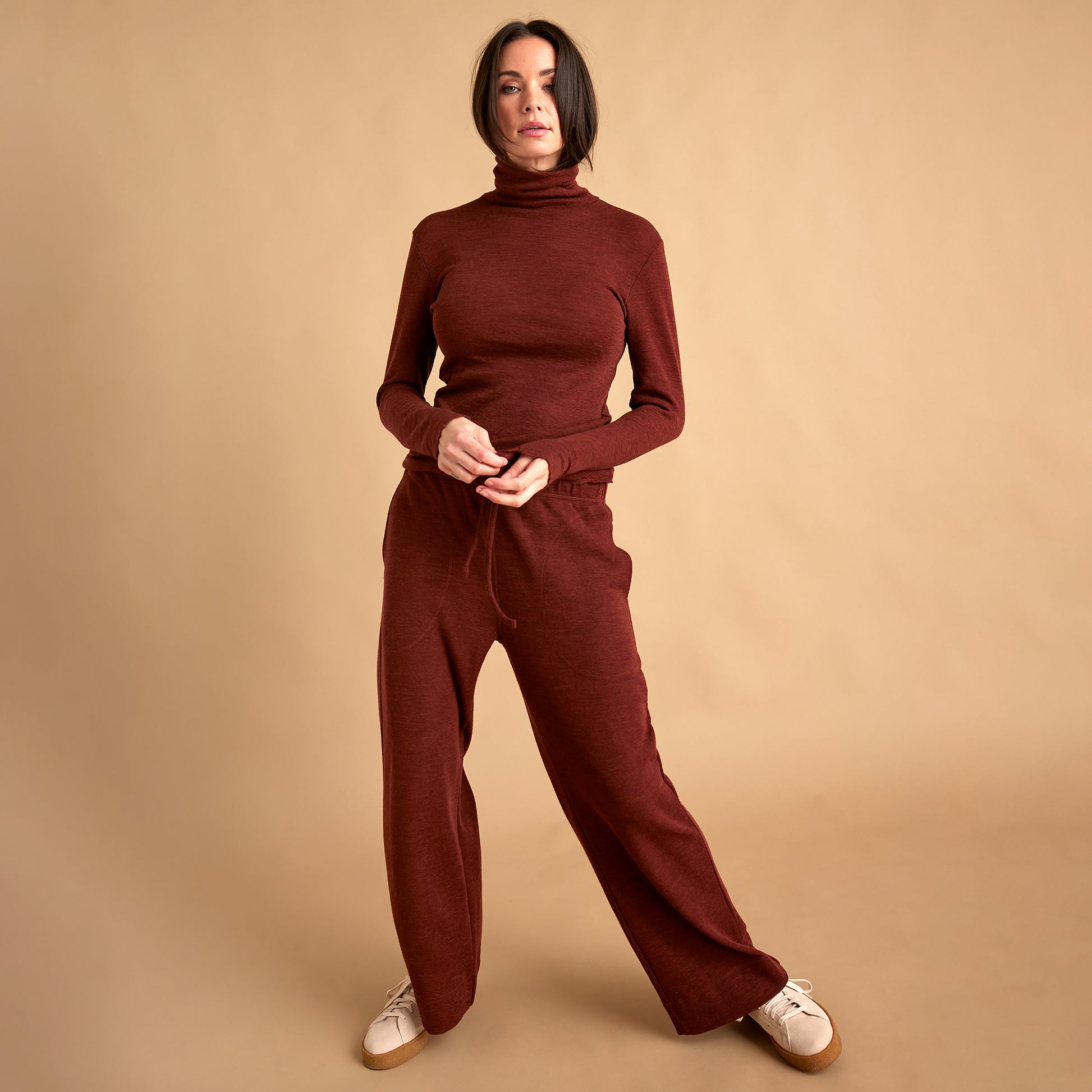 Hellånga vida byxor i 100% merinoull från by basics. Beställningsvara.