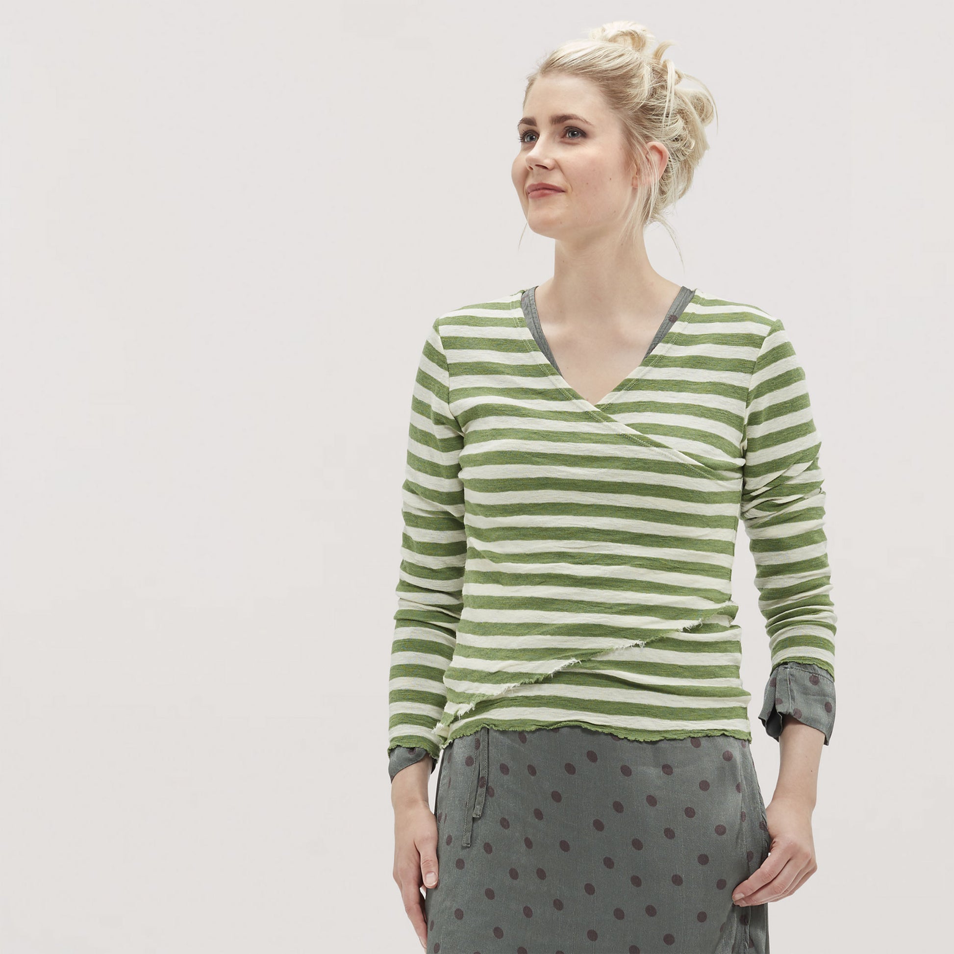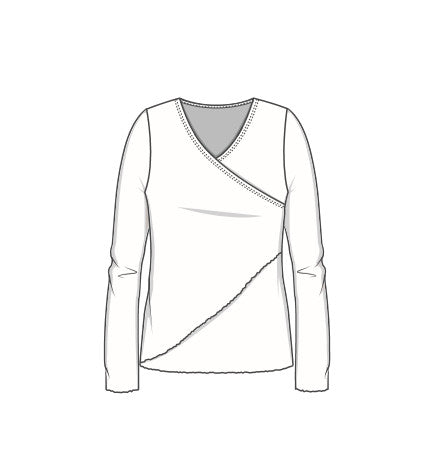 Figurnära tröja med framstycke i omlott. 100 % merinoull från danska Blusbar by basics. Tunn och underbart mjuk merinoull. Tröjan har råa kanter längs nederkanten och ärmarna.