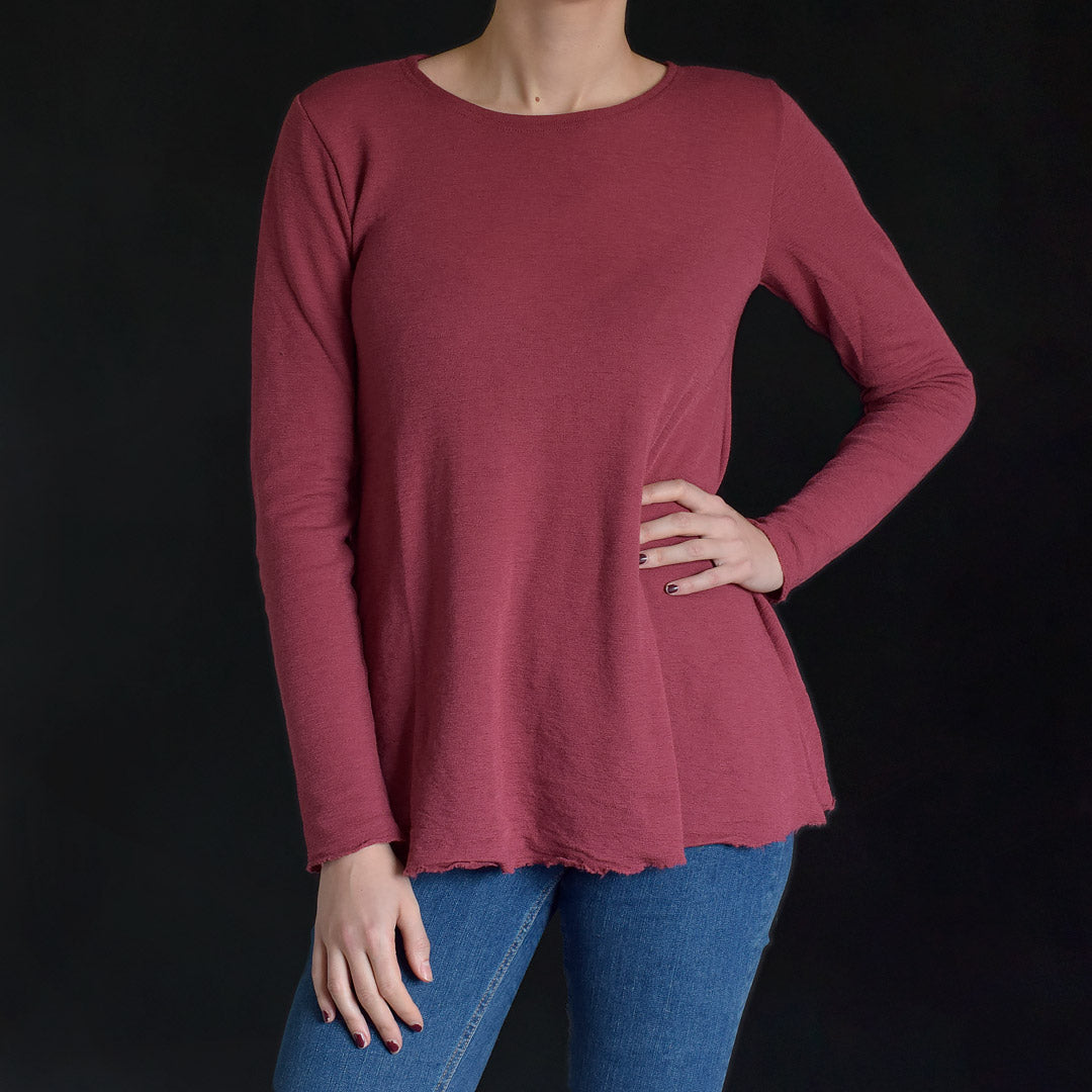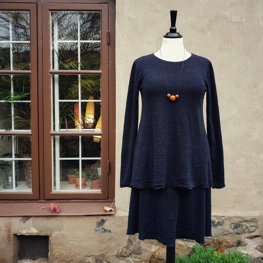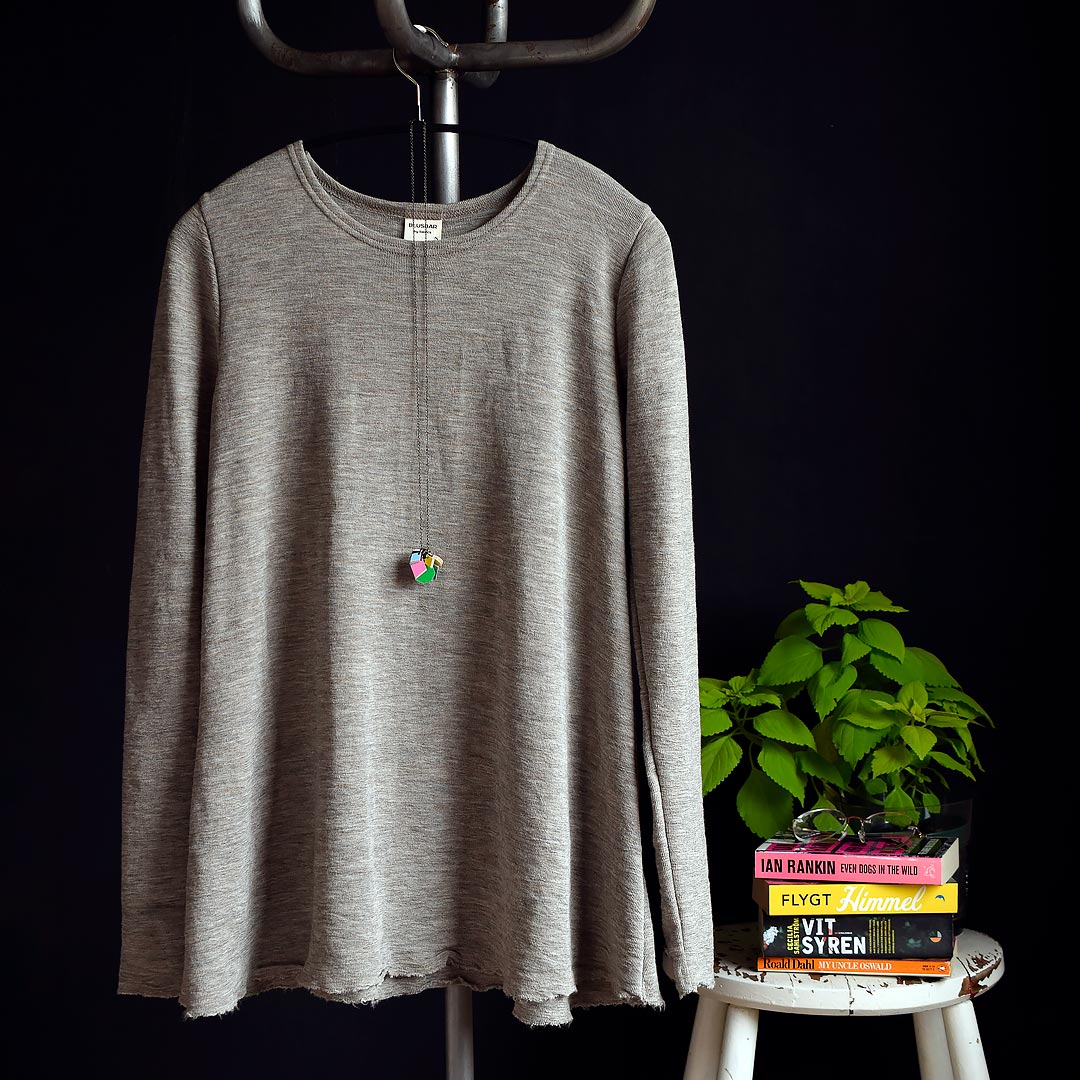 A-formad tröja i 100 % merinoull från danska Blusbar by basics. Nätt passform över axlar och byst med gradvis ökande vidd över höfterna. Tunn och underbart mjuk merinoull. Tröjan har "råa" kanter på ärmar och längs nederkanten.