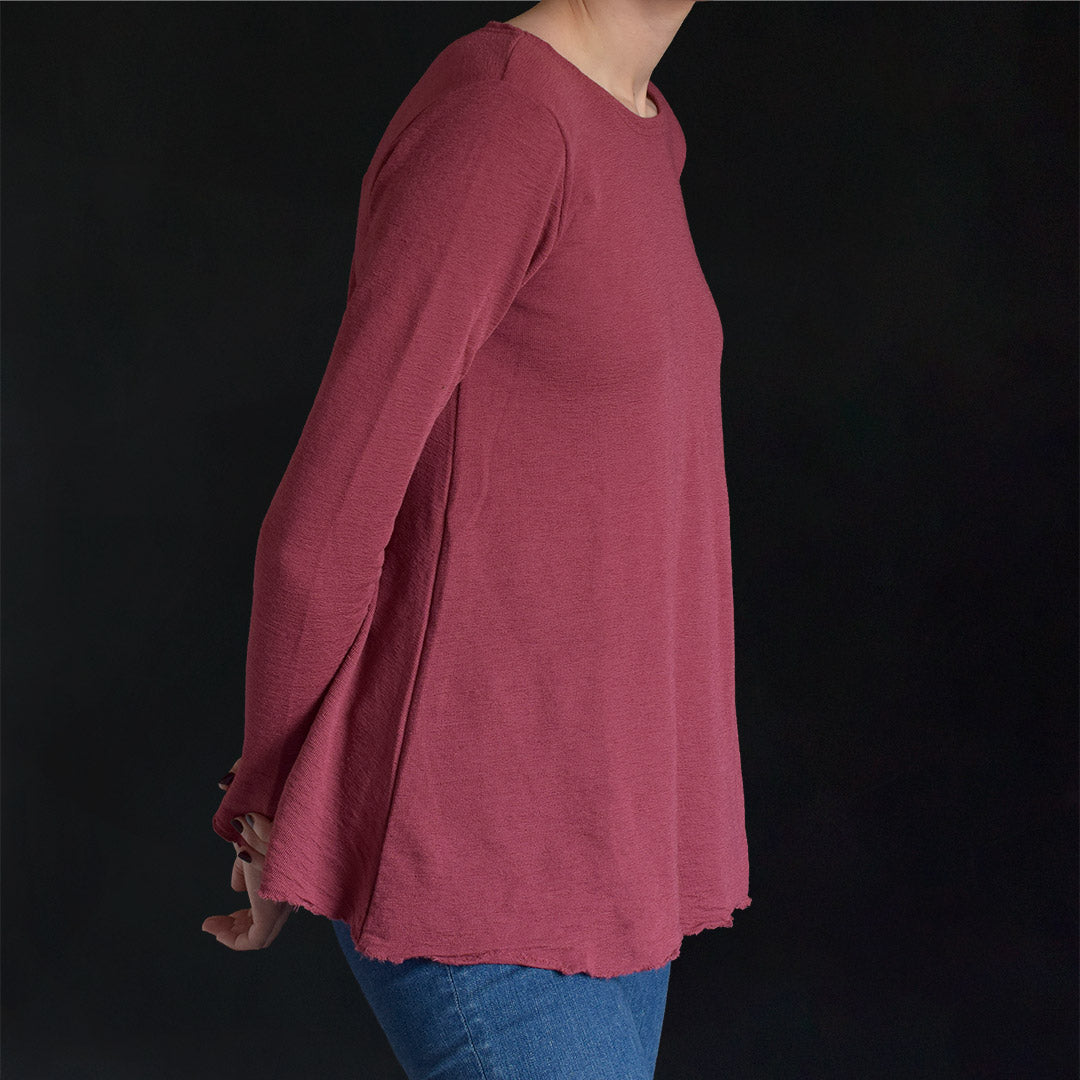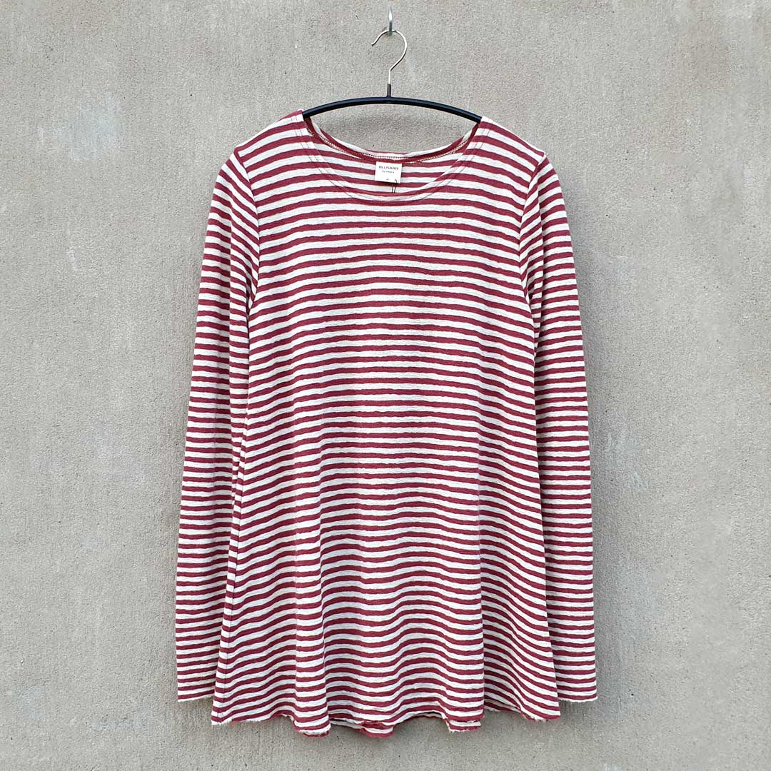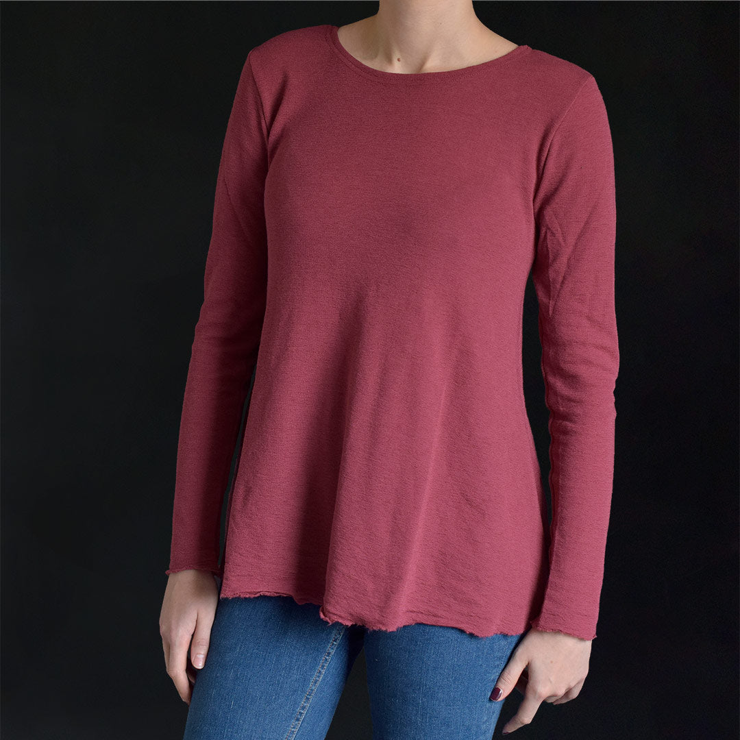 A-formad tröja i 100 % merinoull från danska Blusbar by basics. Nätt passform över axlar och byst med gradvis ökande vidd över höfterna. Tunn och underbart mjuk merinoull. Tröjan har "råa" kanter på ärmar och längs nederkanten.
