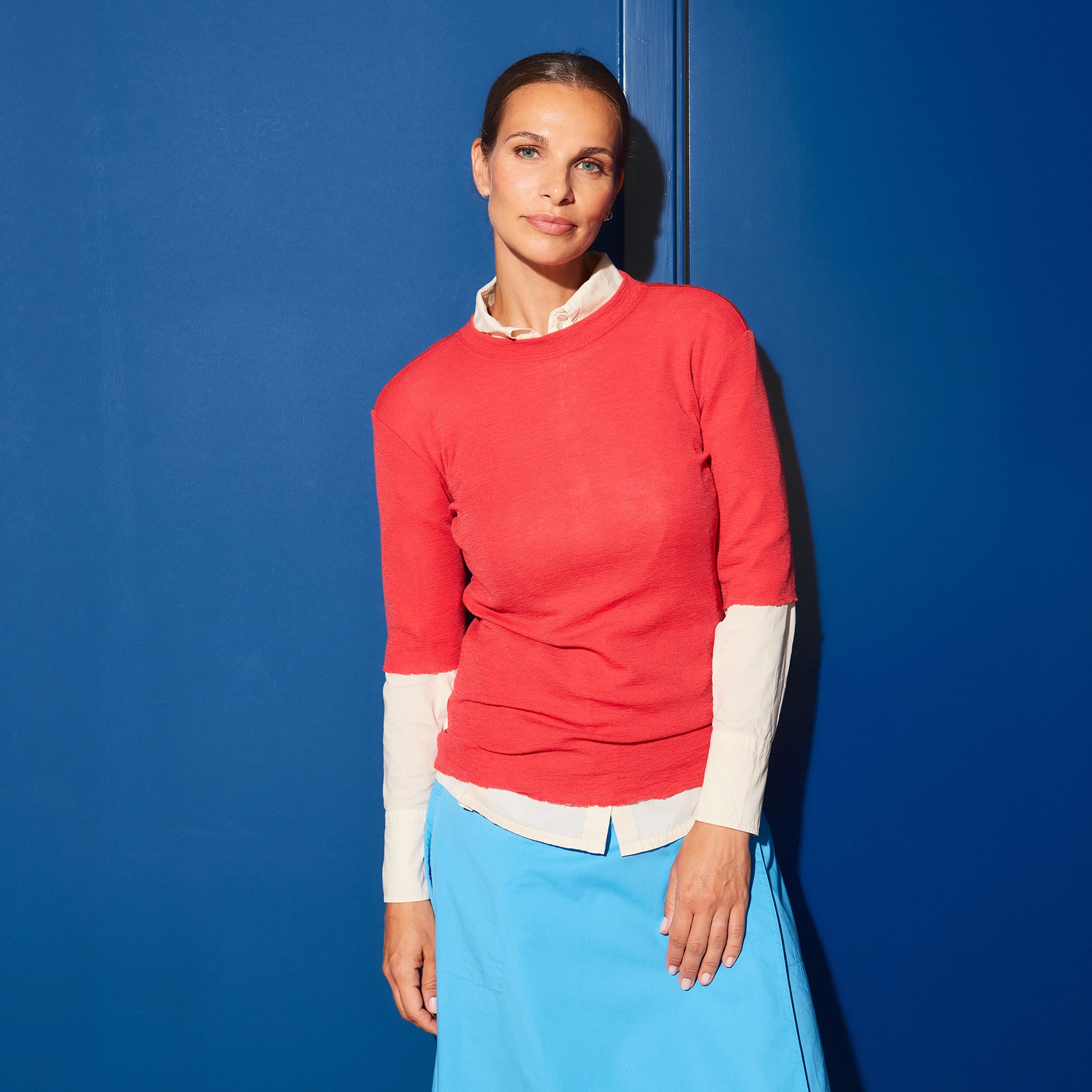 - "Rå" kant nertill och på ärmarna. Kanten skapas på ett sätt som gör att den inte fransar eller repar upp sig