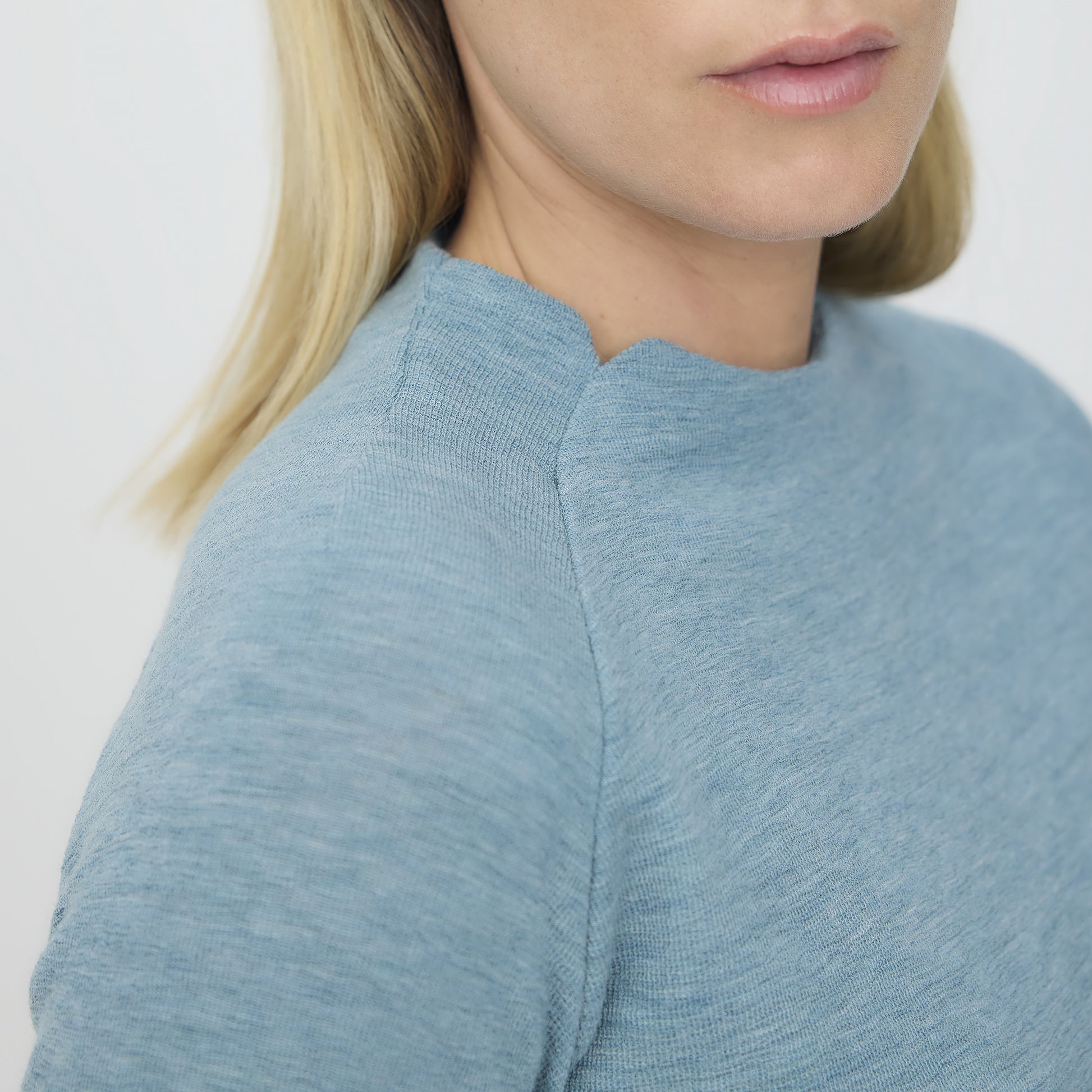 - Rund halsringning med små sprund som en fin detalj.