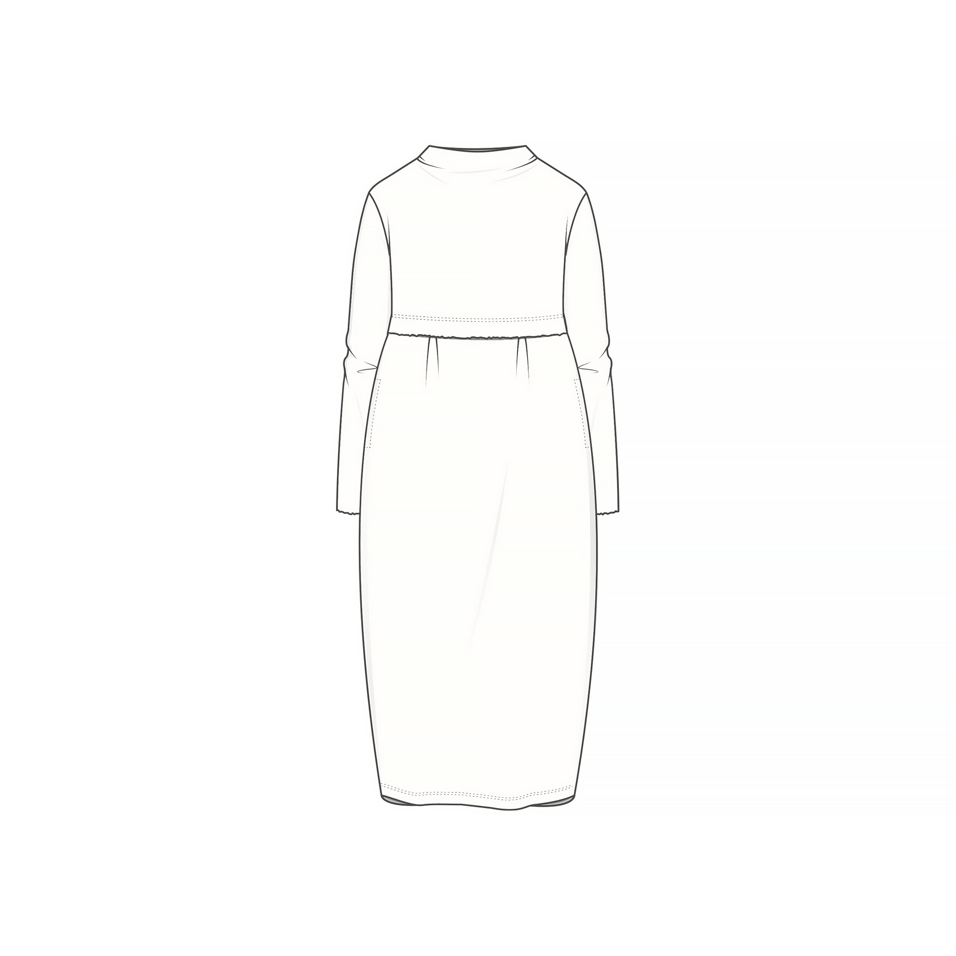 7045 Lång klänning - hög hals, markerad midja och tulpankjol