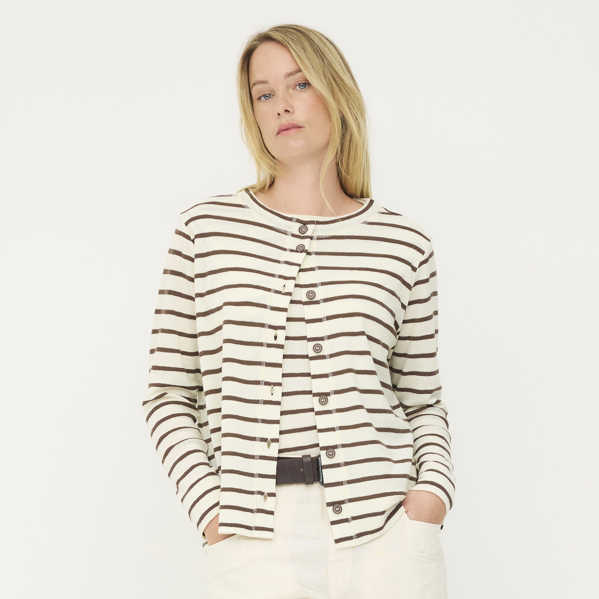8022 Boxy kofta med rund hals, knappar och bred fåll