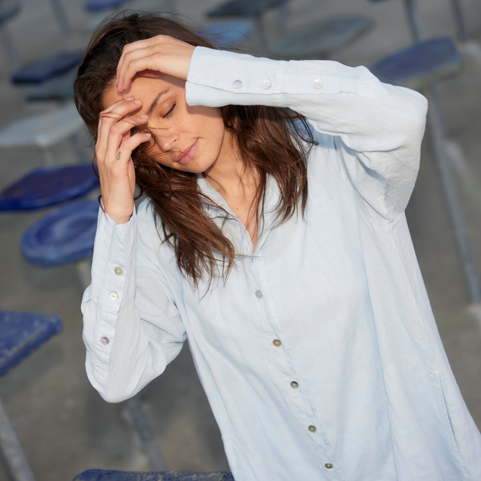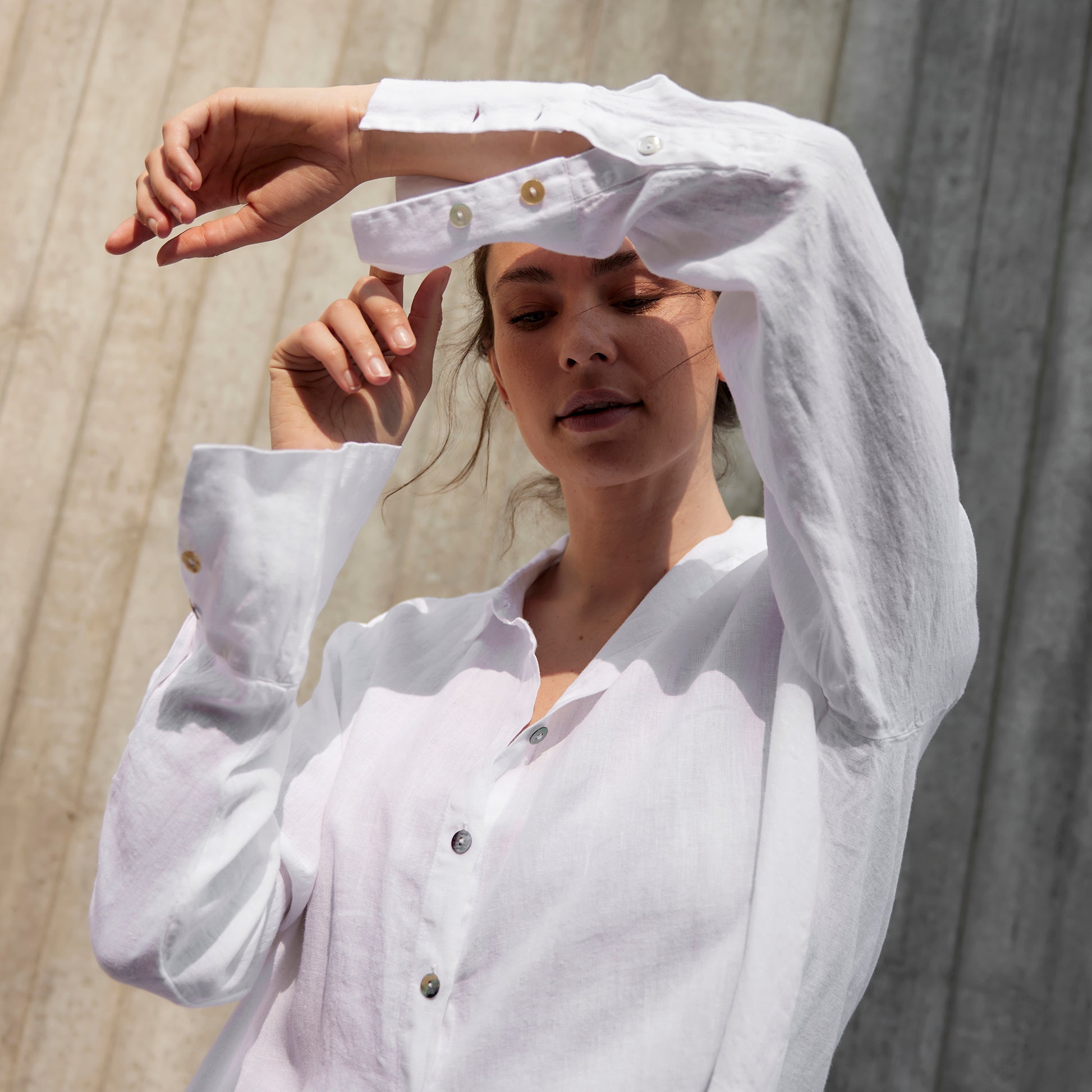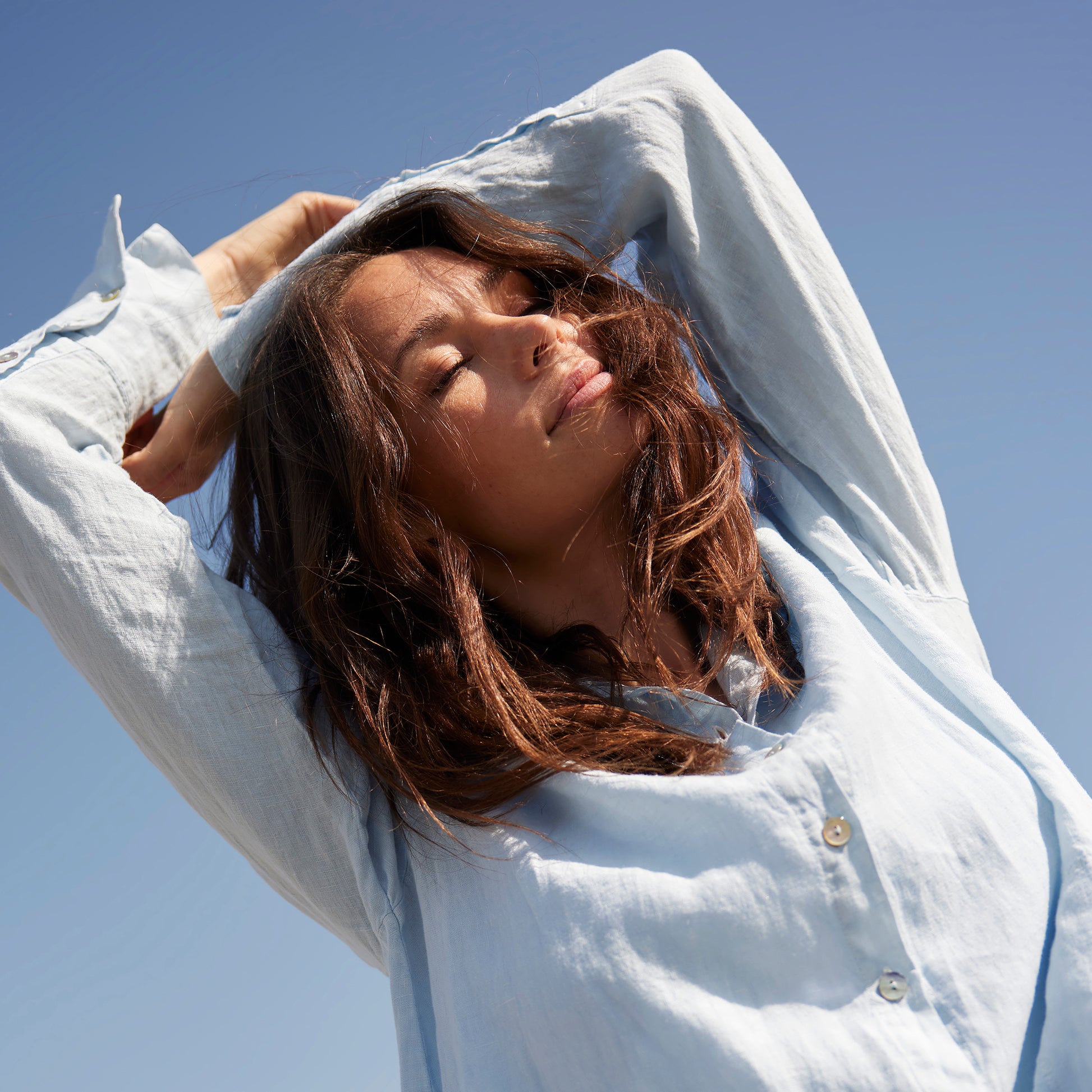 Plagget är färgat, tvättat och tumlat efter sömnad vilket innebär att linnet är mjukt och har ett lätt tvättat utseende.