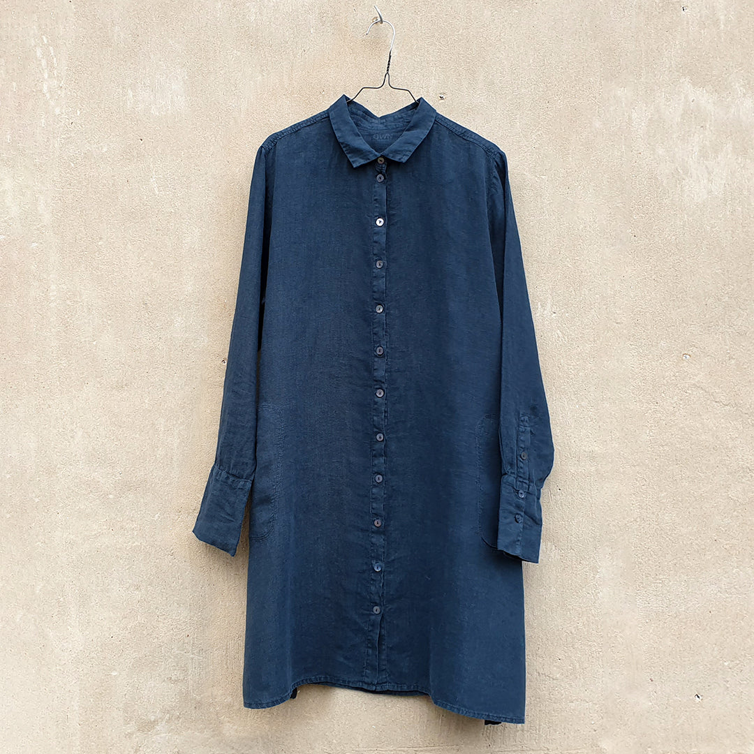 A-formad skjortklänning i linne - Midnight Blue