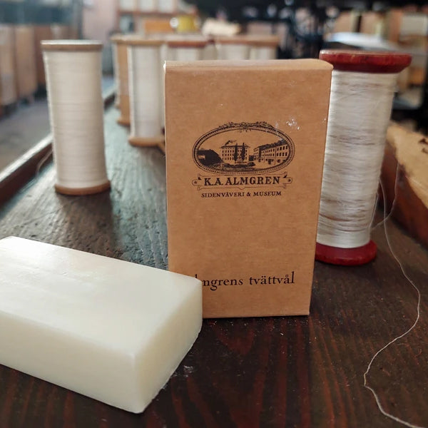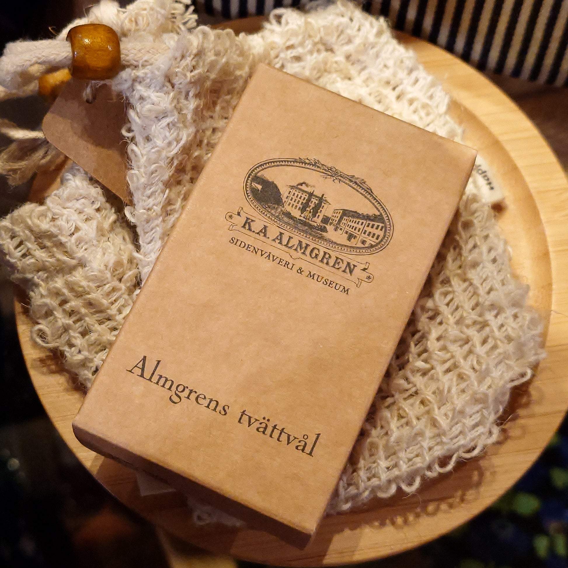 Produktion: Almgrens tvättvål är sidenväveriets egen produkt och tillverkas i Sverige. Inga konserveringsmedel eller parfymer tillsätts. Palmoljan som ingår är från Colombia, ekologisk och RSPO-certifierad.