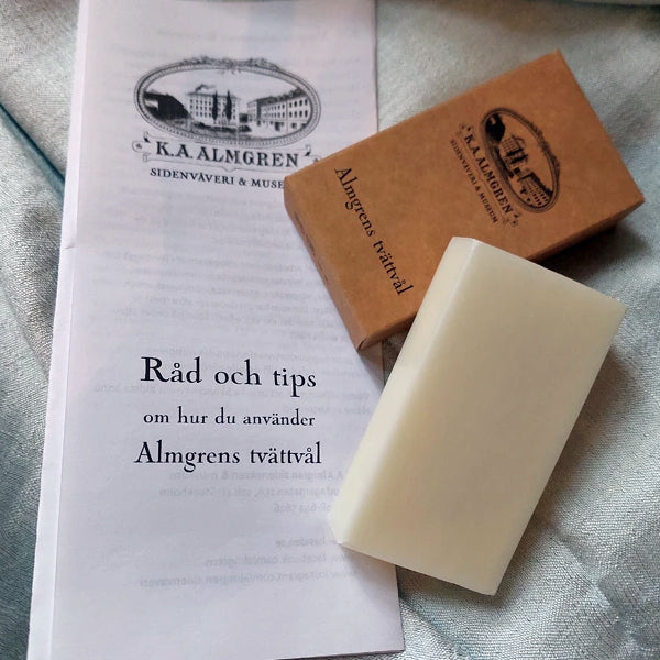 Fler tips och råd hittar du i Almgren sidenväveris folder Tips och råd om hur du använder Almgrens tvättvål »