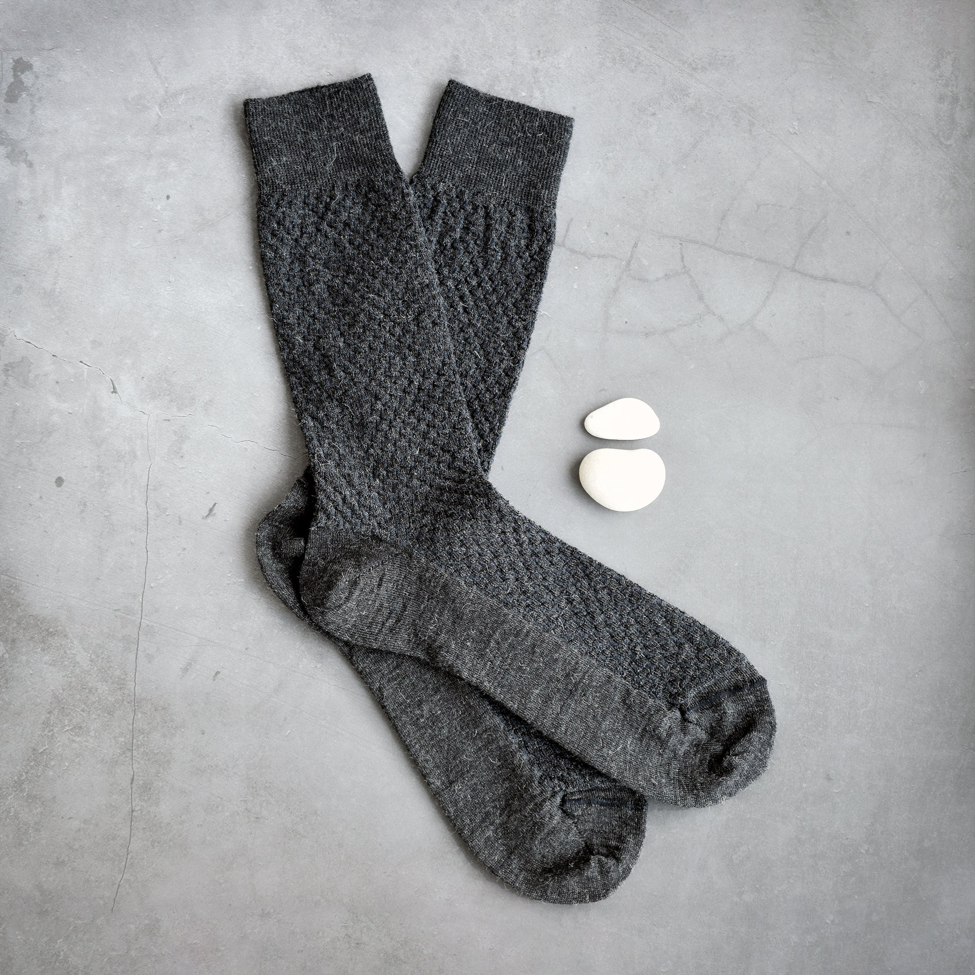 För finsmakaren! Strukturstickade sockar i otroligt mjuk och silkeslen alpackaull. En lyxig produkt för dig som värdesätter utsökta material och sparsmakad design.