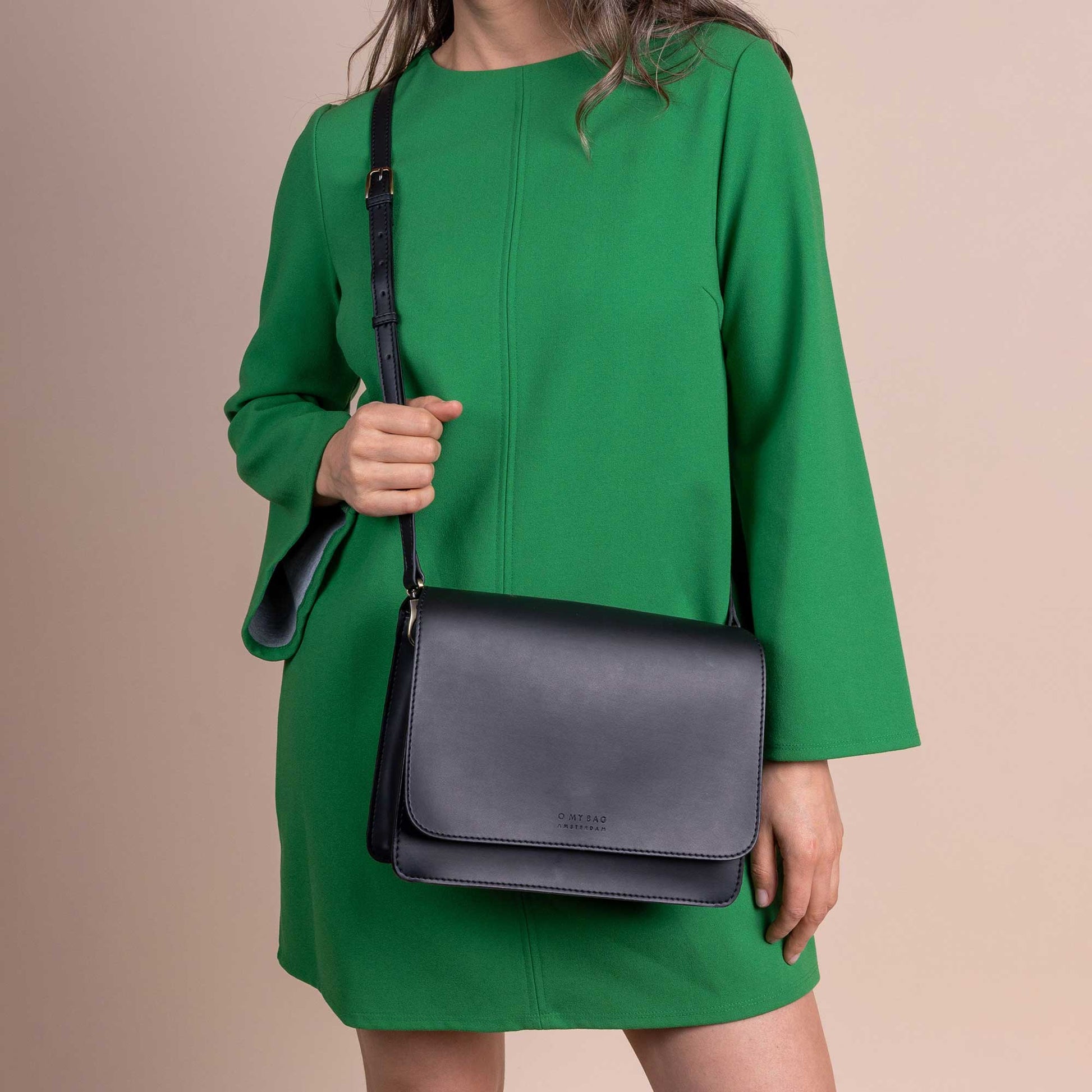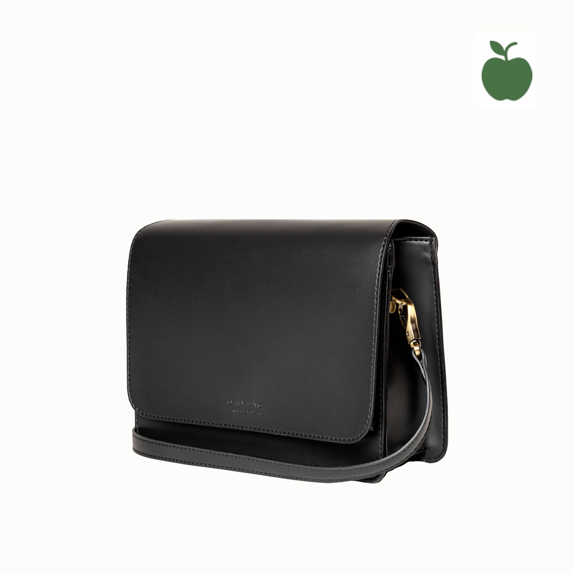 Klassisk handväska i minimalistisk design tillverkad av äppelläder, ett veganskt alternativ till traditionellt läder. Från O My Bag, Amsterdam.