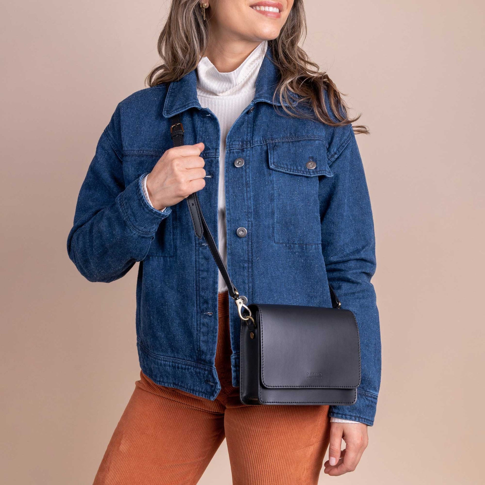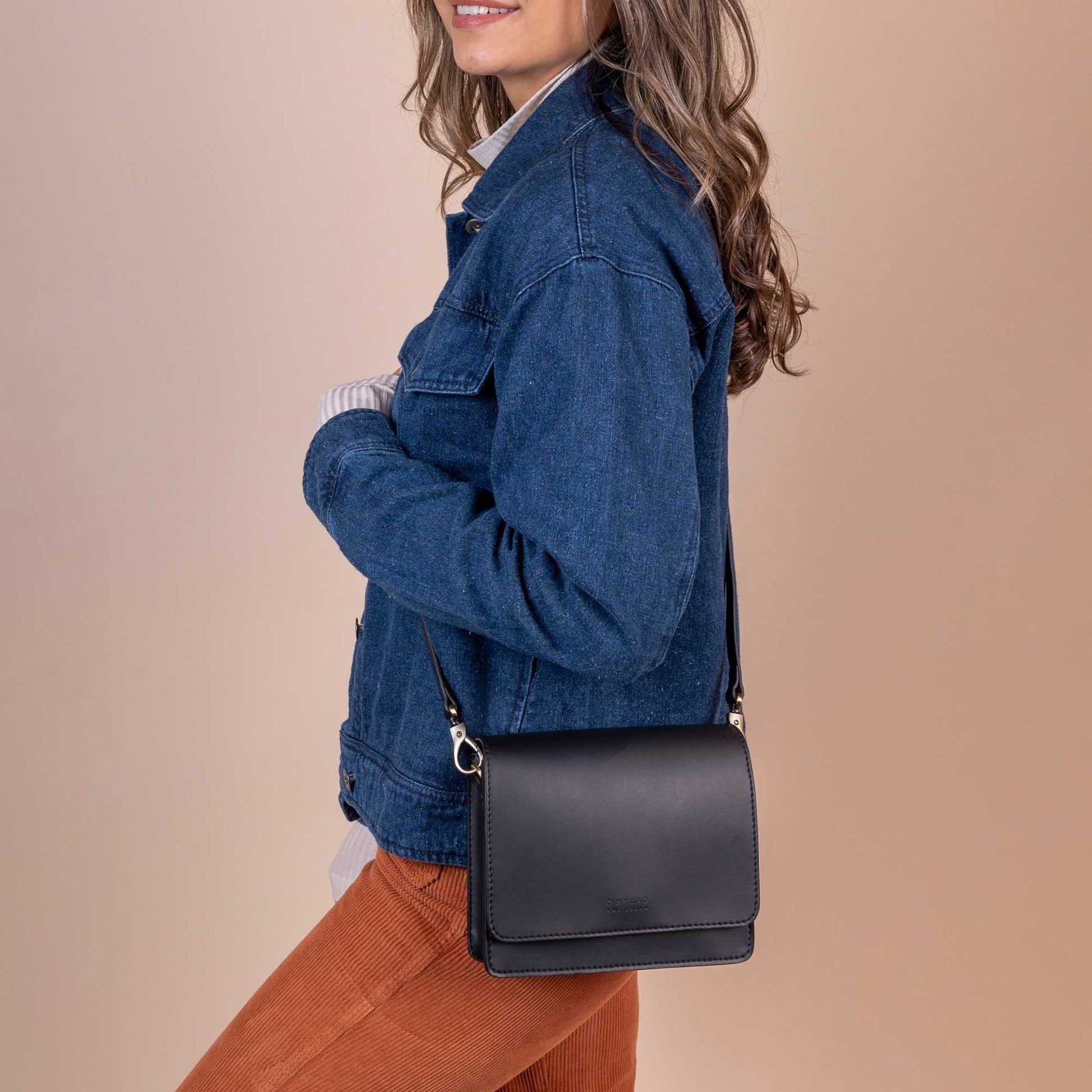 Klassisk mindre handväska i minimalistisk design tillverkad av äppelläder, ett veganskt alternativ till traditionellt läder. Från O My Bag, Amsterdam.