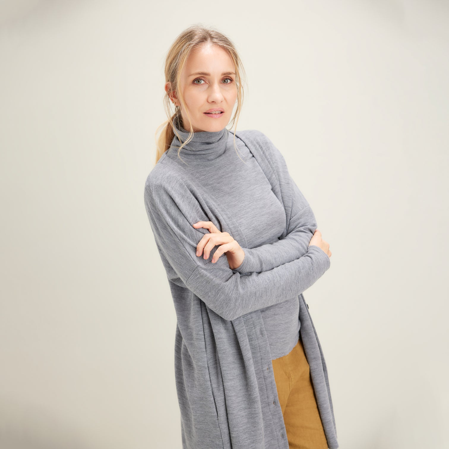 Tunn och underbart mjuk merinoull. Merinoull är temperaturreglerande och mycket behagligt att bära även närmast kroppen. Den tunna ullen ger skön värme samtidigt som den låter huden andas och absorberar fukt så att du alltid känner dig lagom varm.