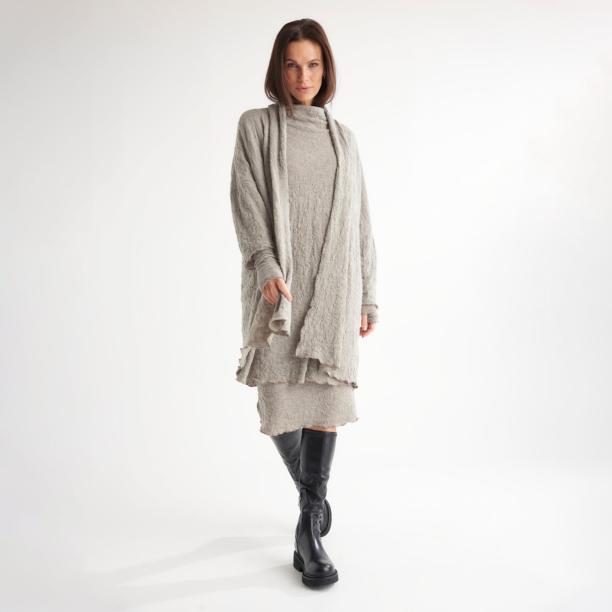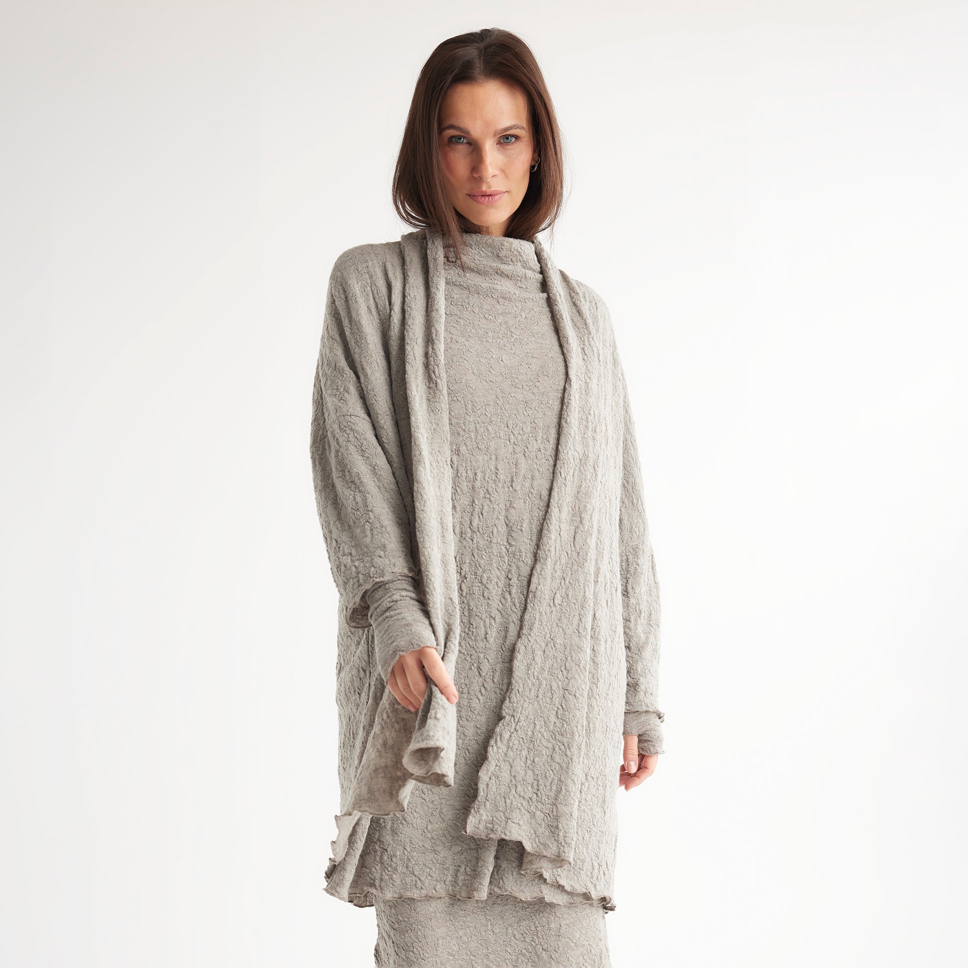 Oversize cardigan i tunn jacquardstickad merinoull med struktur. En cardigan som tack vare den fina strukturen även fungerar i lite festligare sammanhang.
