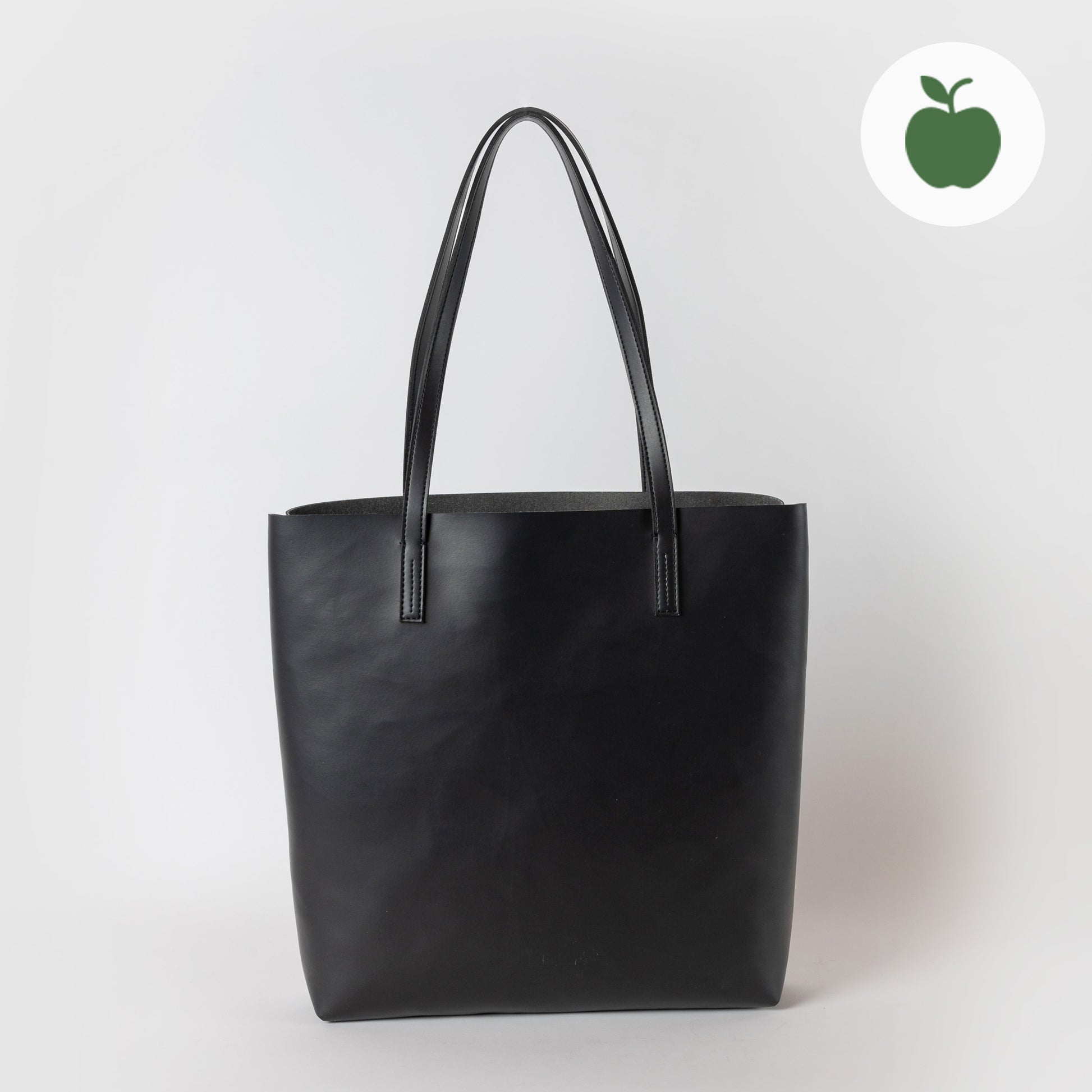Material: 40% äppelavfall, 60% bomull, viskos och polyester. Innerväska i 100% bomullscanvas.