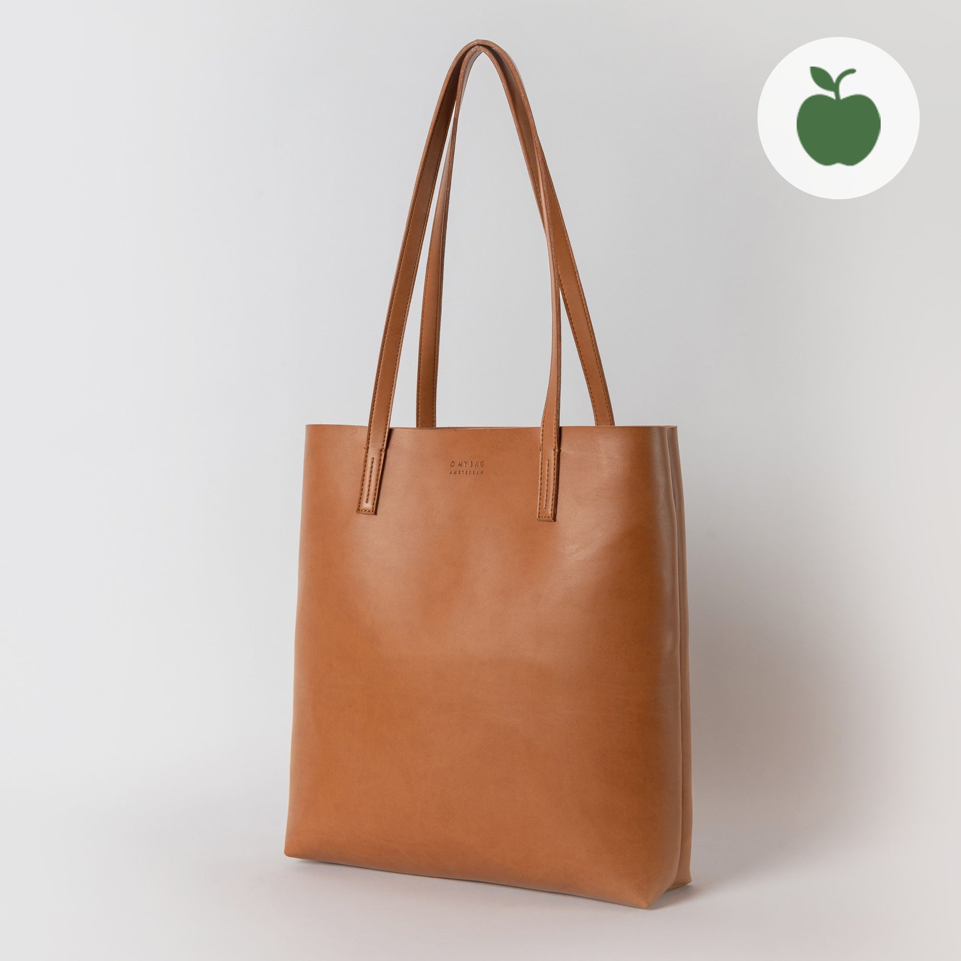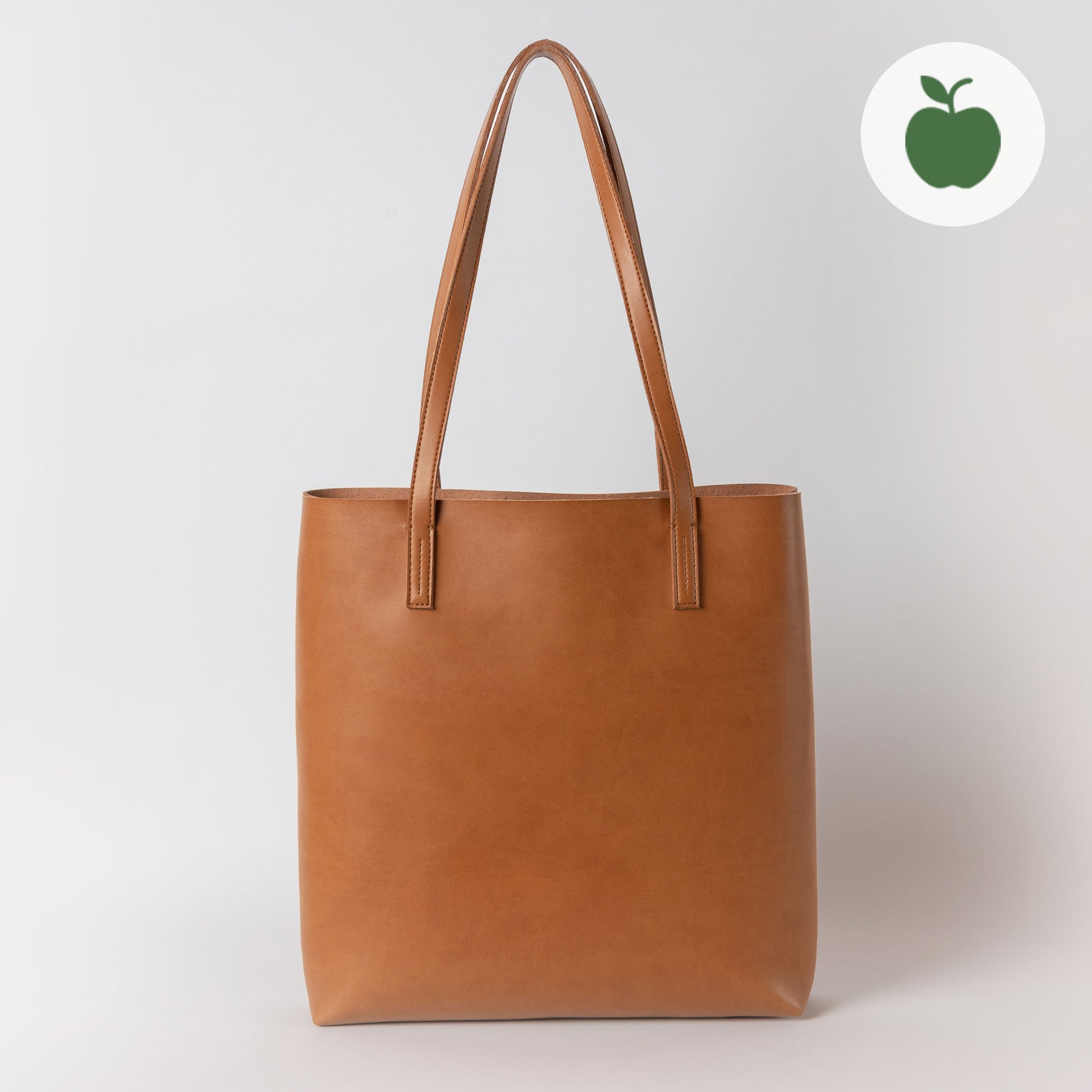 Material: 40% äppelavfall, 60% bomull, viskos och polyester. Innerväska i 100% bomullscanvas.