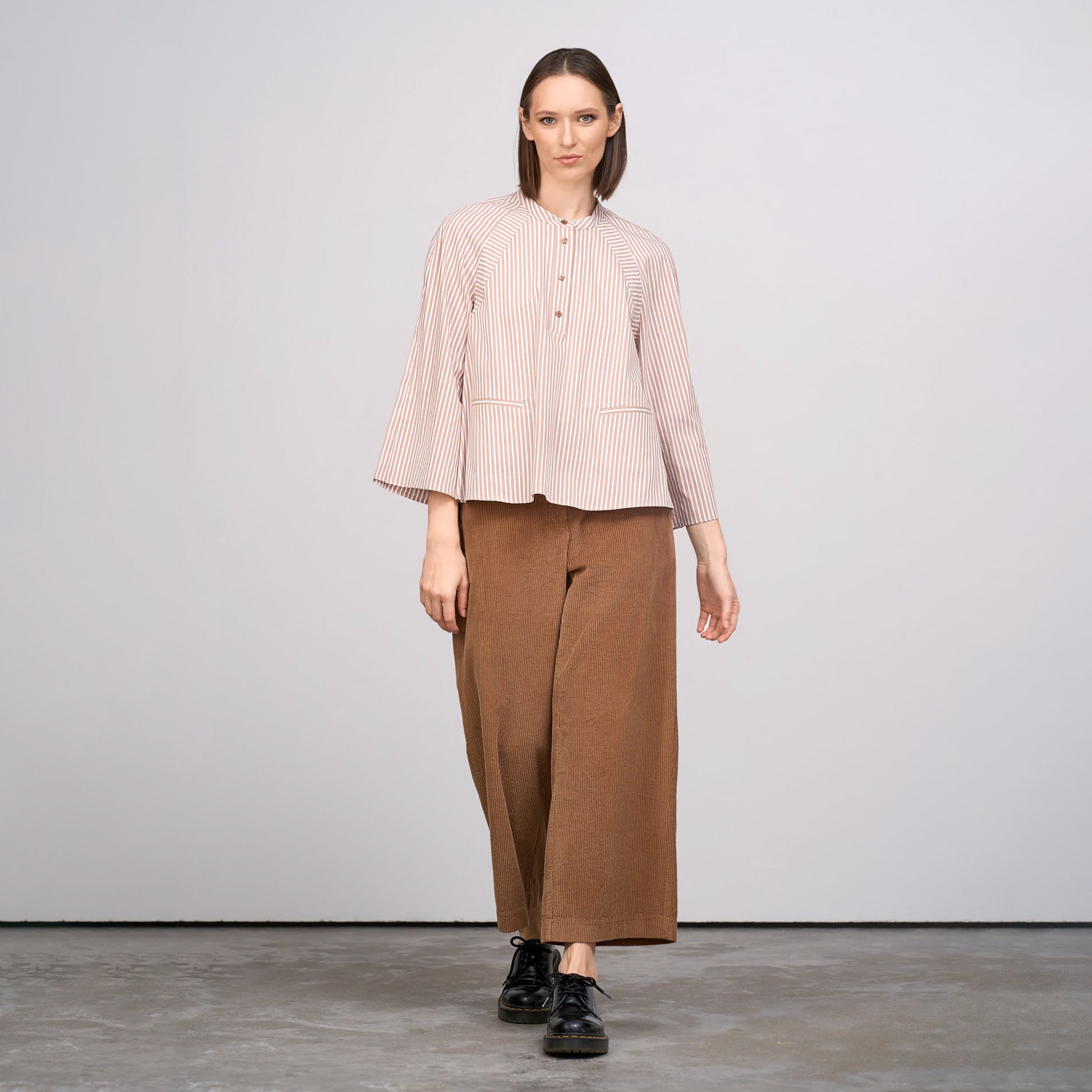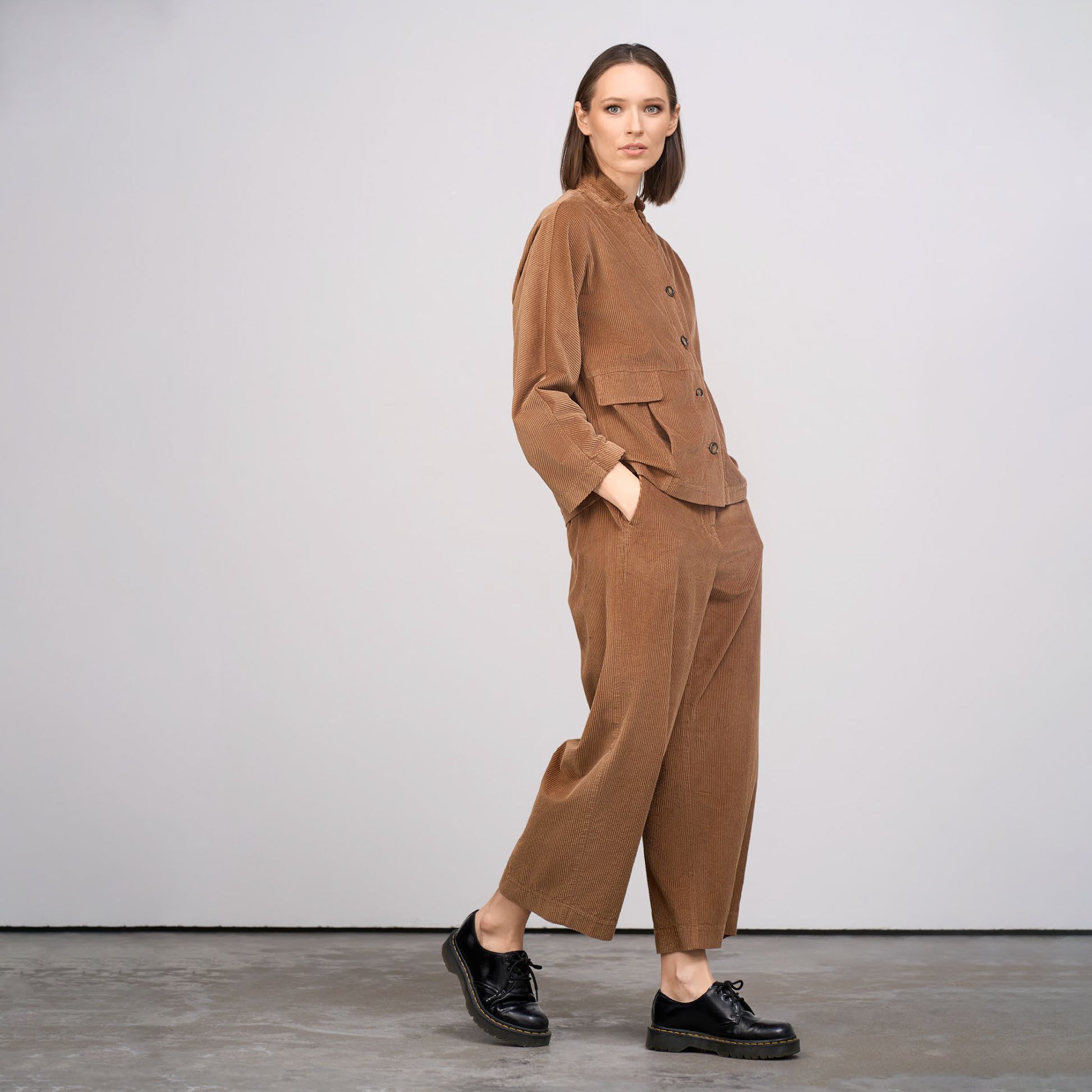 Mjuka manchesterbyxor i 100 % bomull, från litauiska märket GR Nature. Rak lite kortare modell med vidd i benen.