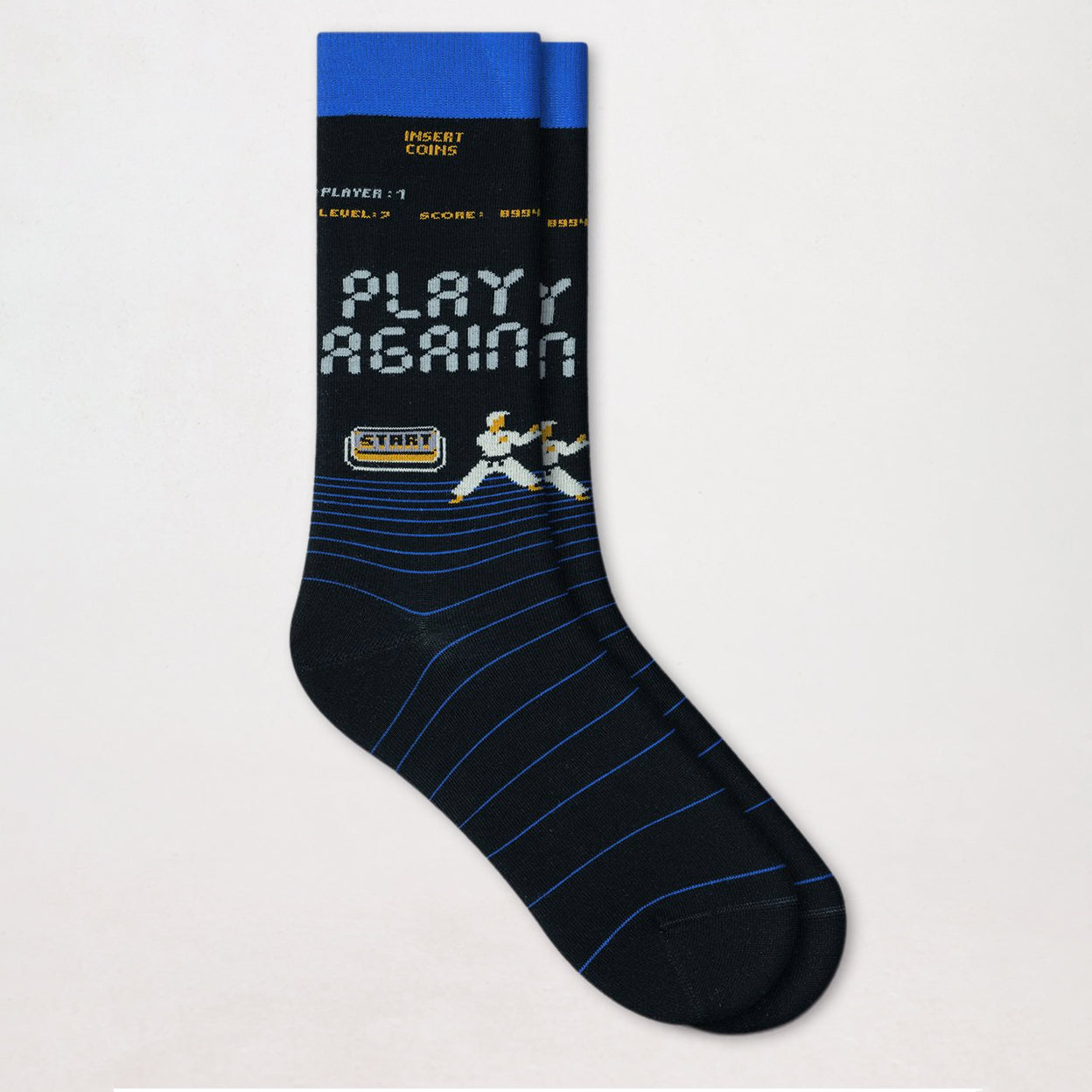 Strumpa med motiv inspirerat av det klassiska arkadspelet Kung-Fu Master från 1980-talet.