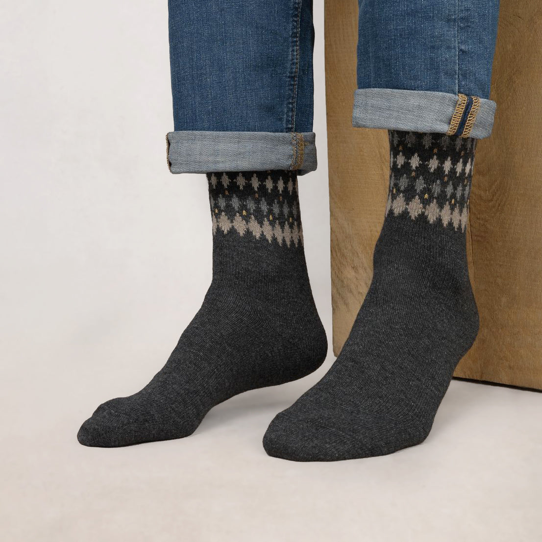 En lite tjockare men ändå finstickad herrstrumpa i en mjuk och varm blanding av ull, viskos och kashmir. Med polyamid för ökad slitstyrka.
