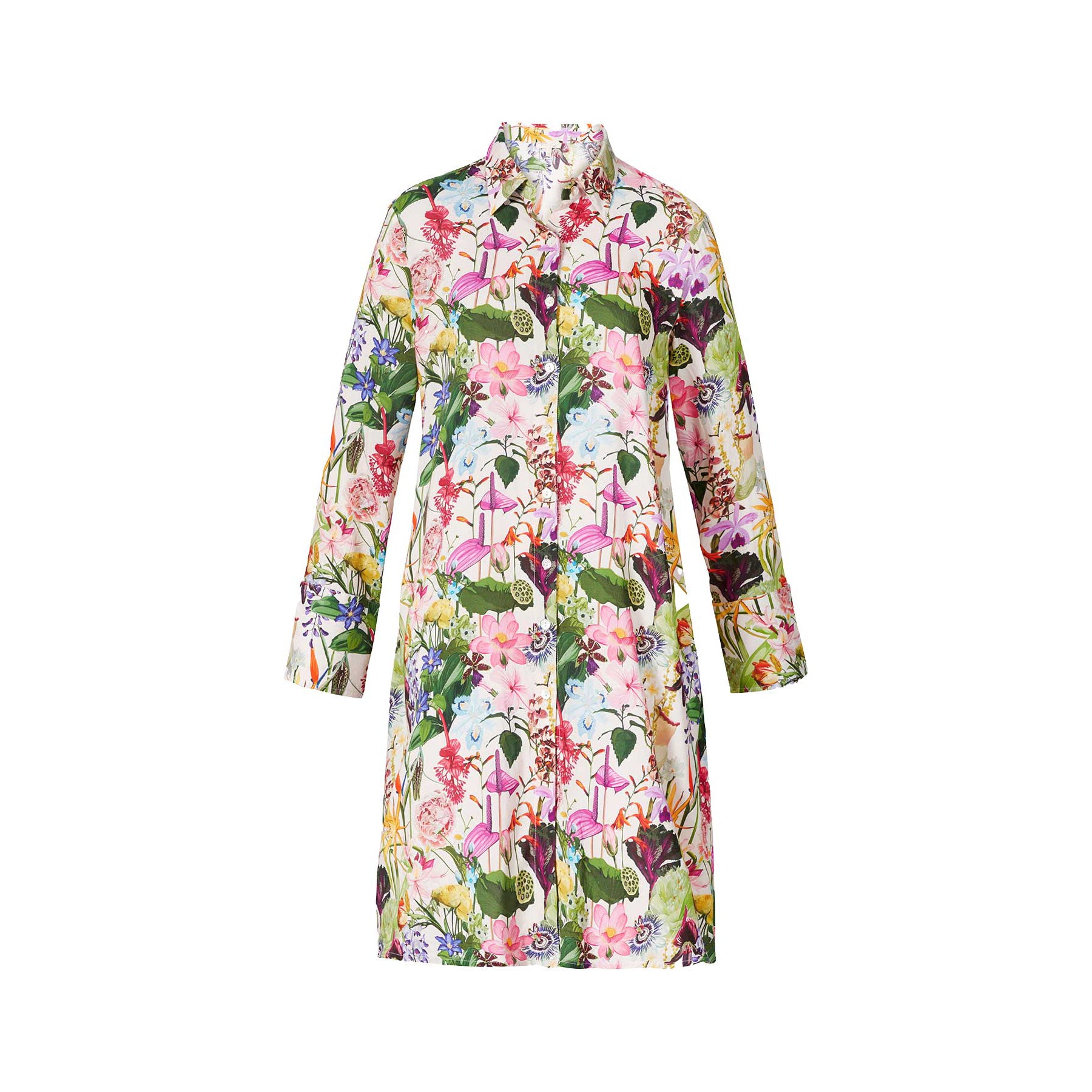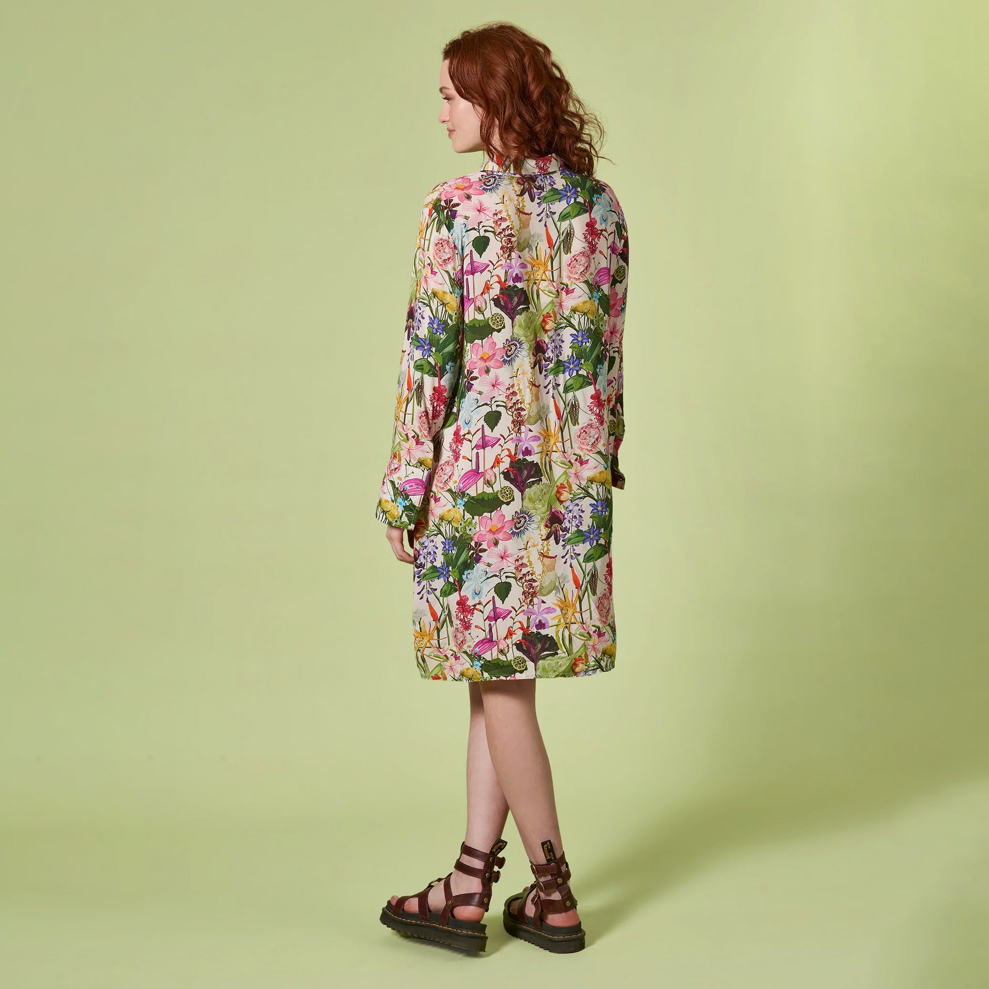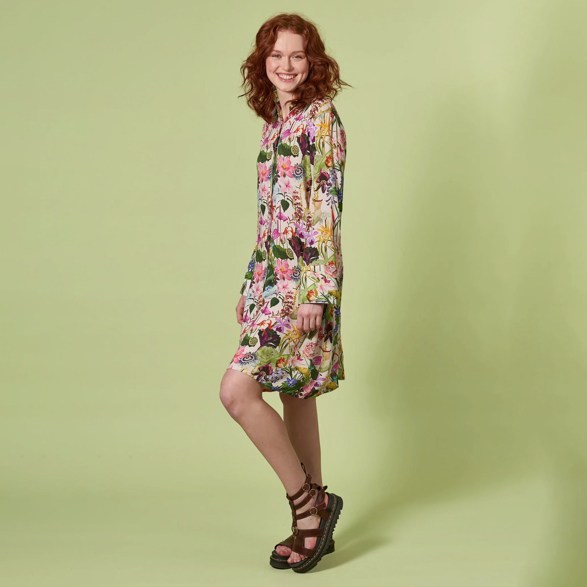 Långärmad skjortklänning i blomstermönstrad modal, en tunn, lätt och följsam kvalitet, från Himalaya Clothing. En otroligt somrig skjortklänning, perfekt till midsommar!