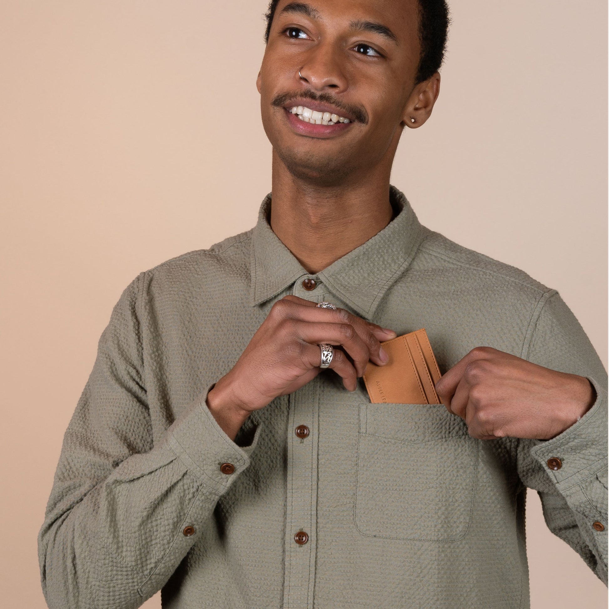 Mark's Cardcase - minimalistisk korthållare i äppelläder, ett veganskt alternativ till traditionellt läder. Från O My Bag, Amsterdam.