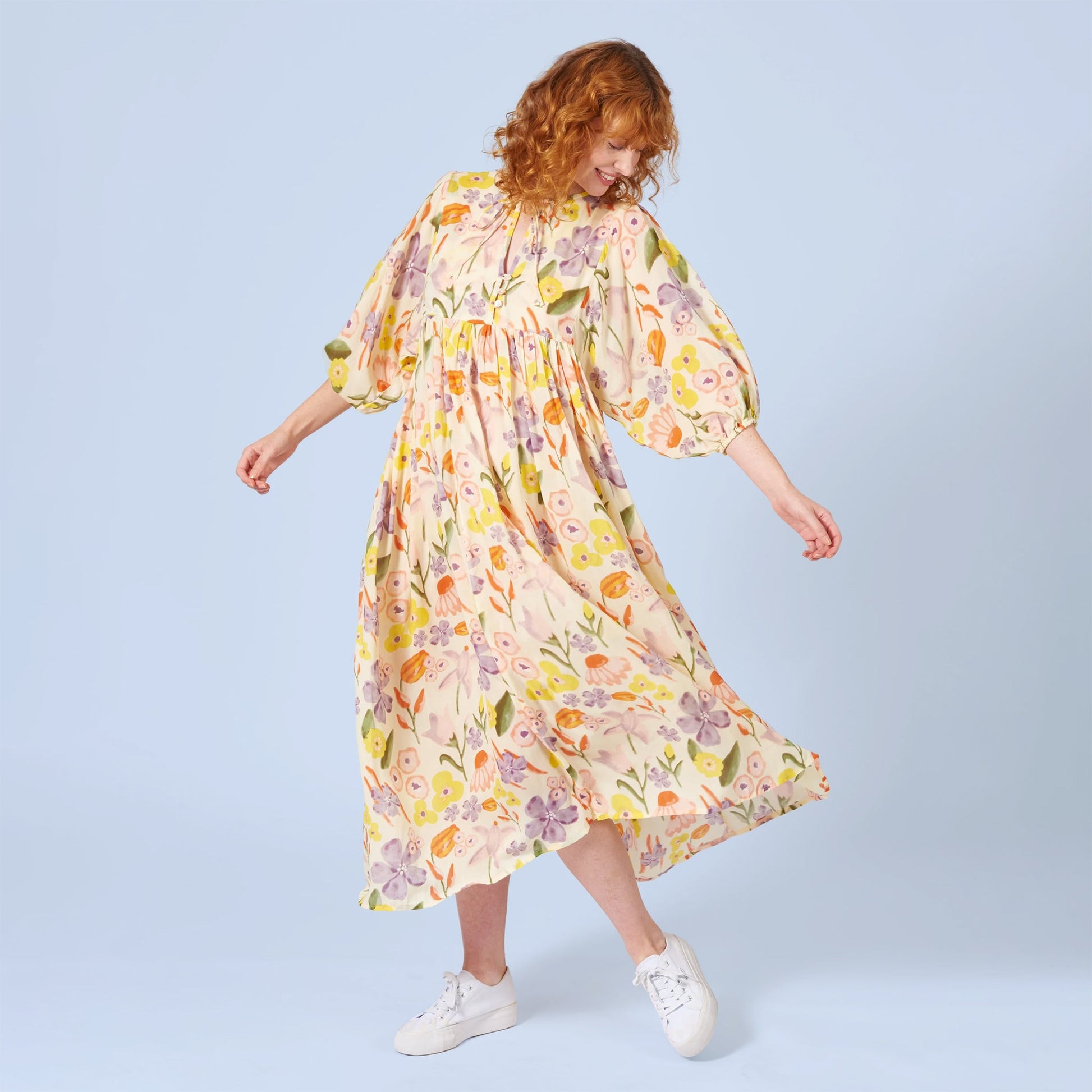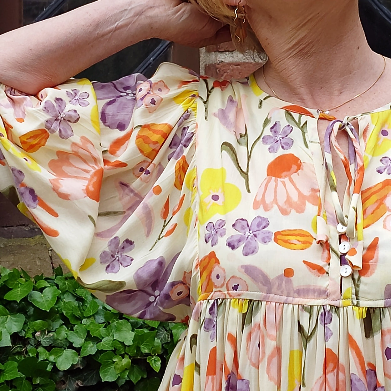 Lång blommig sommarklänning i viskos - Midsommarblomster