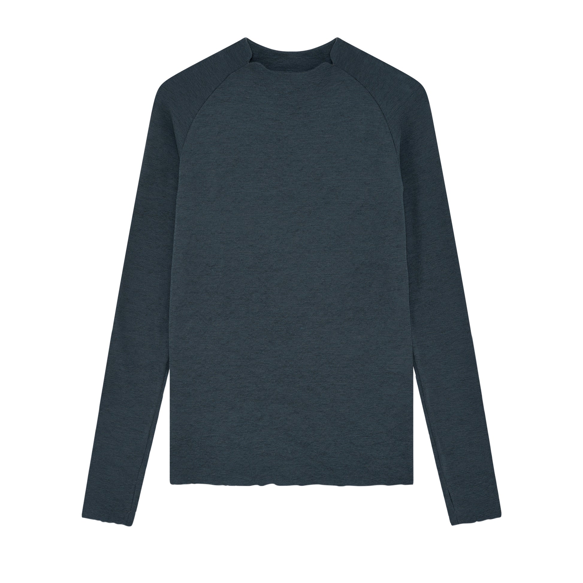 Långärmad merinoulltröja med raglanärm och tumhål - Midnight Blue Melange