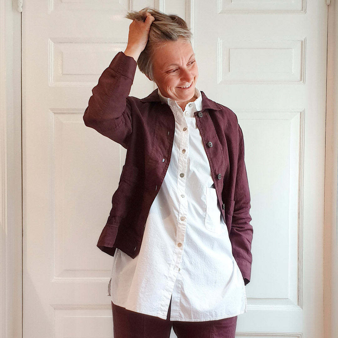 Kort jacka i mjuktvättat linne, från OWN by basics. Bekväm modell som påminner om en jeansjacka. Med enkel krage och påsydda fickor. Snygg vår- och sommarjacka men användbar även milda höstdagar med en lite tjockare ylletröja under.