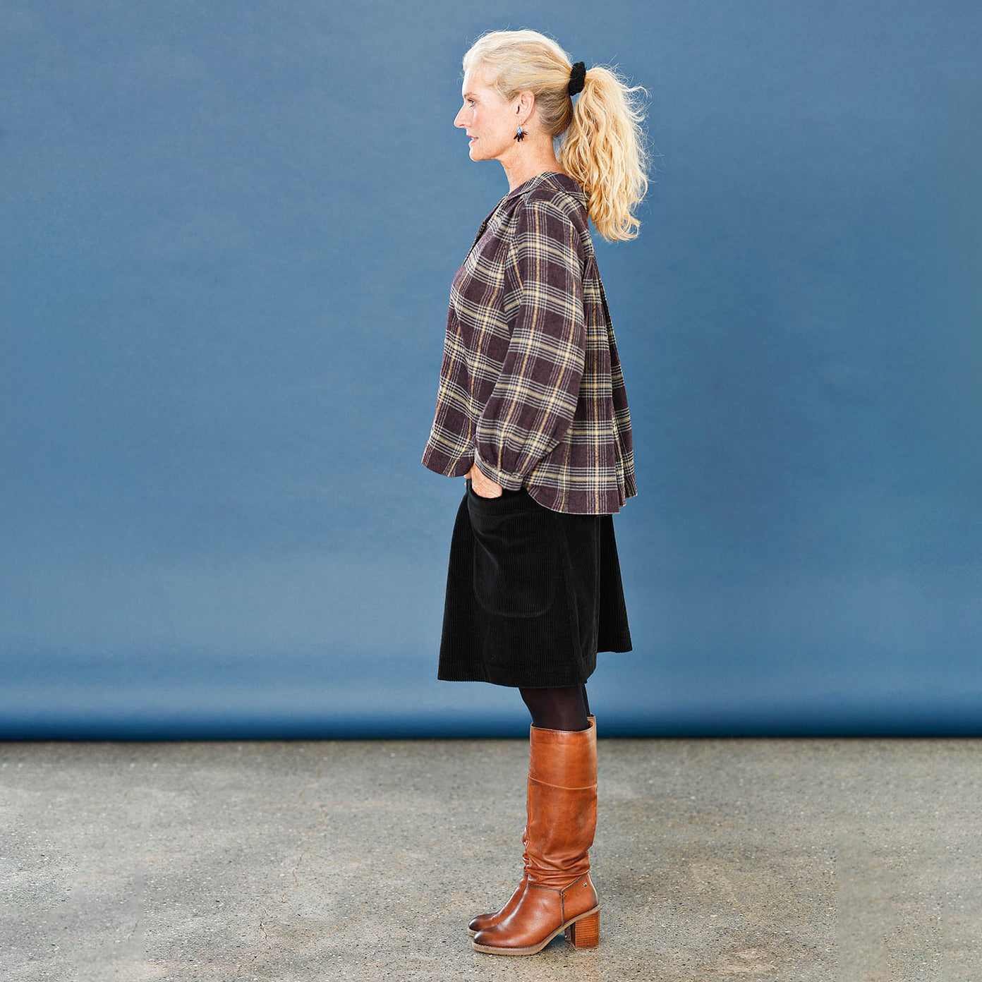 En mycket användbar kjol som är lätt att styla efter tycke och smak. Den blir höst- och vinterfin med en varm tröja, ett par tjocka strumpbyxor och grova skor eller kängor. En tidlös klassiker i garderoben.