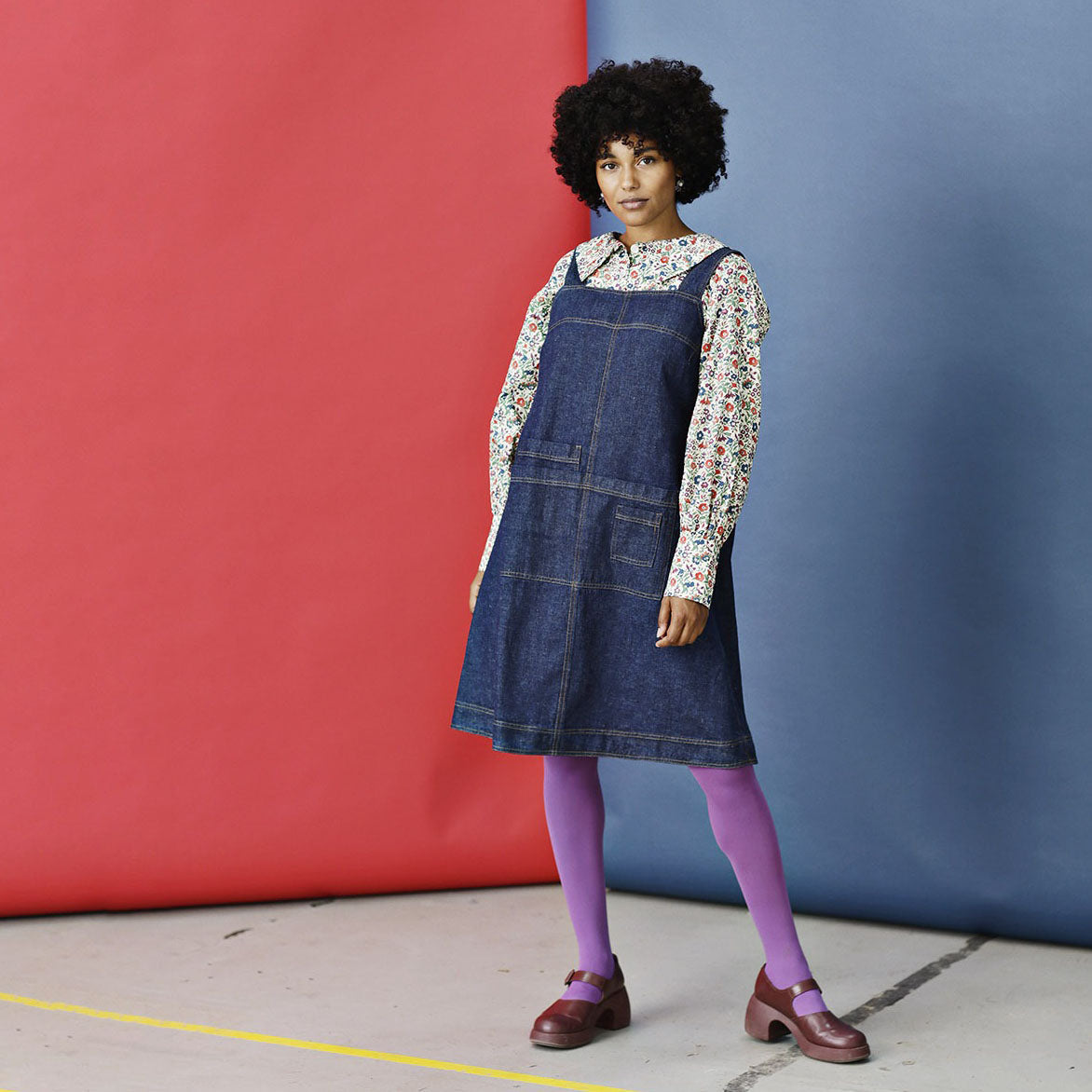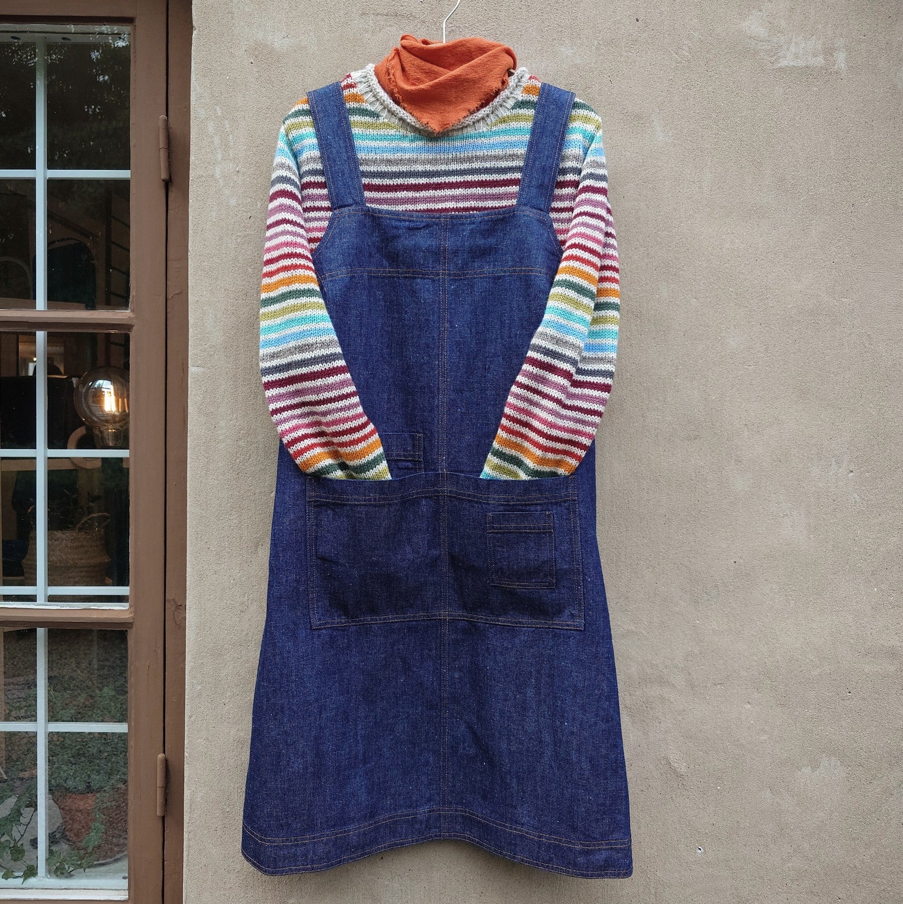 En mycket användbar och otroligt slitstark åretruntklänning. Jättefin sommartid med bara ben och en enkel t-shirt eller linneskjorta under. Sätter du en tjock mysig stickad tröja under och ett par ulleggings eller strumpbyxor i merinoull till, så håller du dig skönt varm hela vintern!