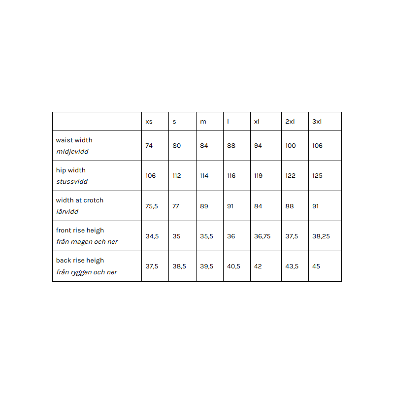 Passform: Byxmodellen BETTINA sitter högt i midjan och har rejäl vidd i benen. De har en full längd på 100 cm i M.