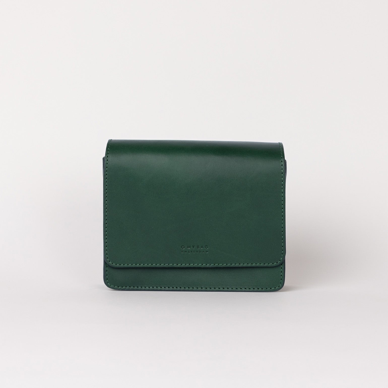 Klassisk mindre handväska i minimalistisk design i snyggt grönt läder. Från O My Bag, Amsterdam.