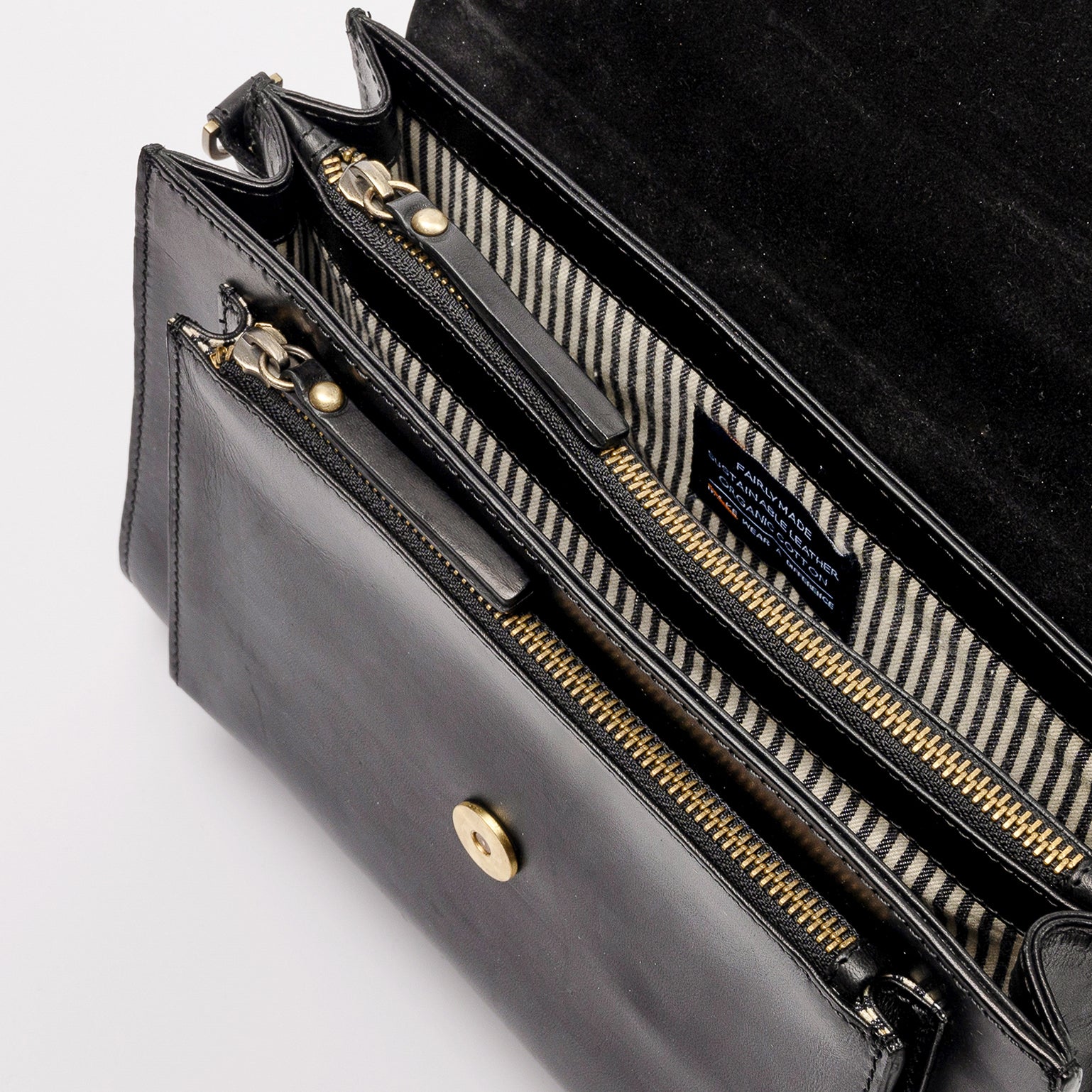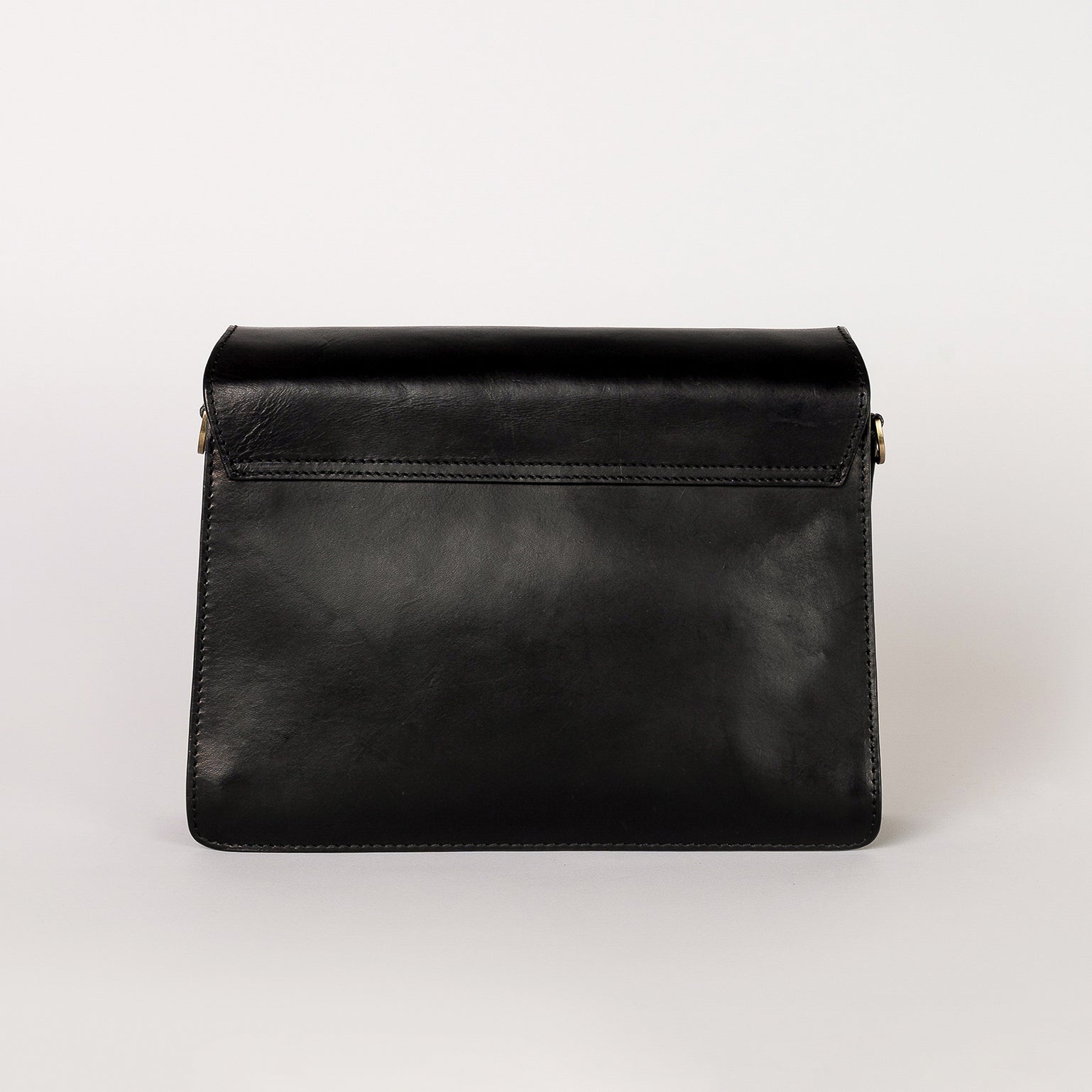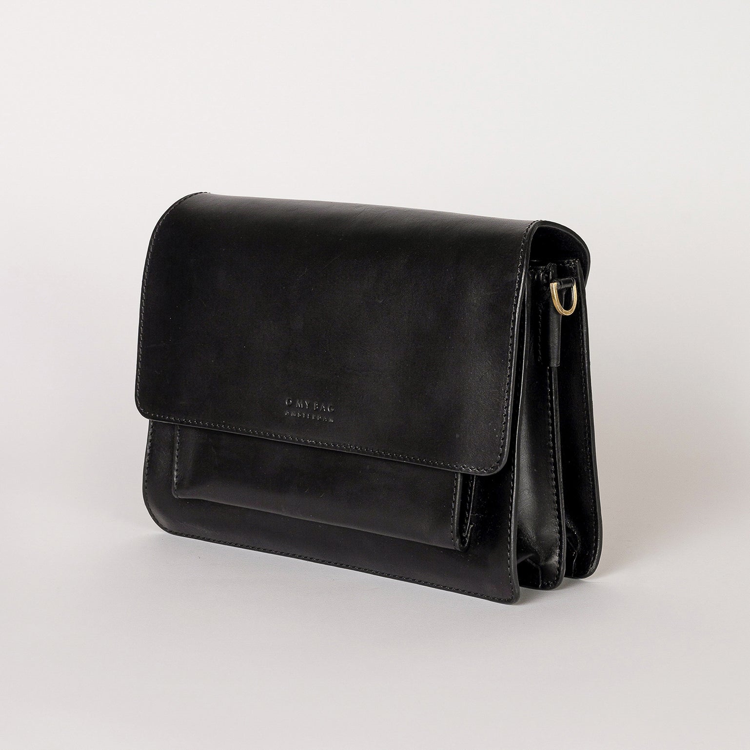 Praktisk handväska i minimalistisk design i äkta svart läder. Från O My Bag, Amsterdam.