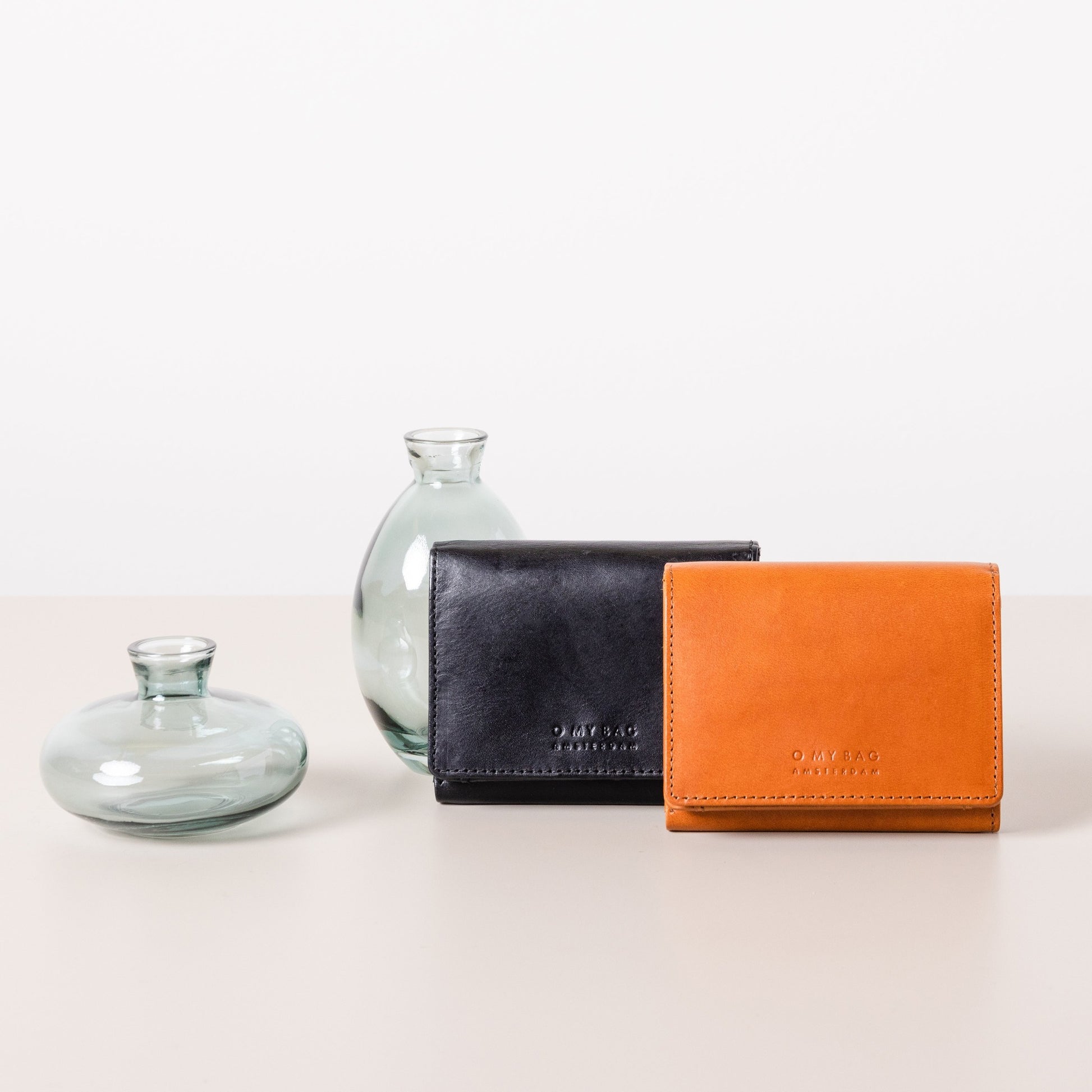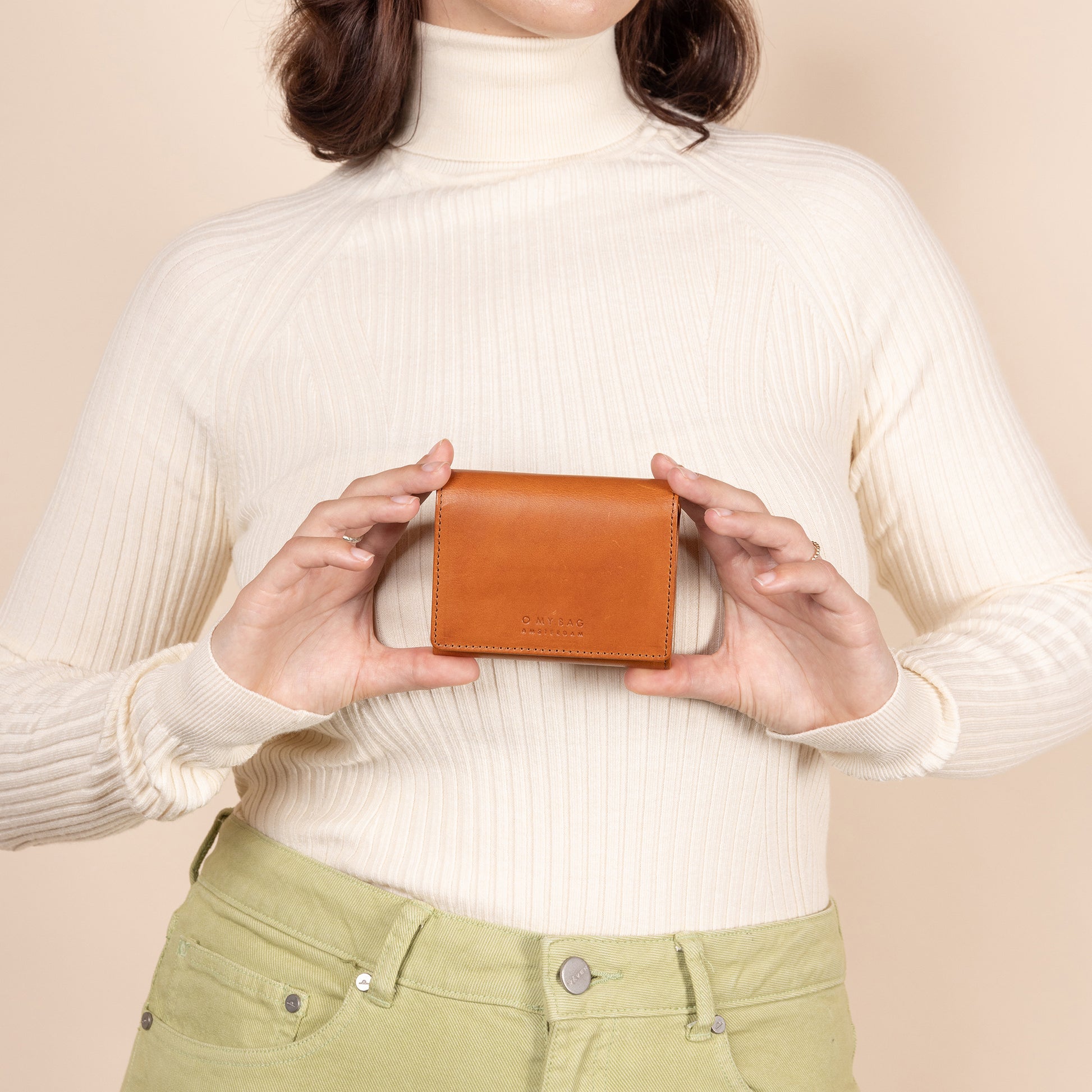 Ollie - minimalistisk plånbok i cognacsfärgat läder. Från O My Bag, Amsterdam.