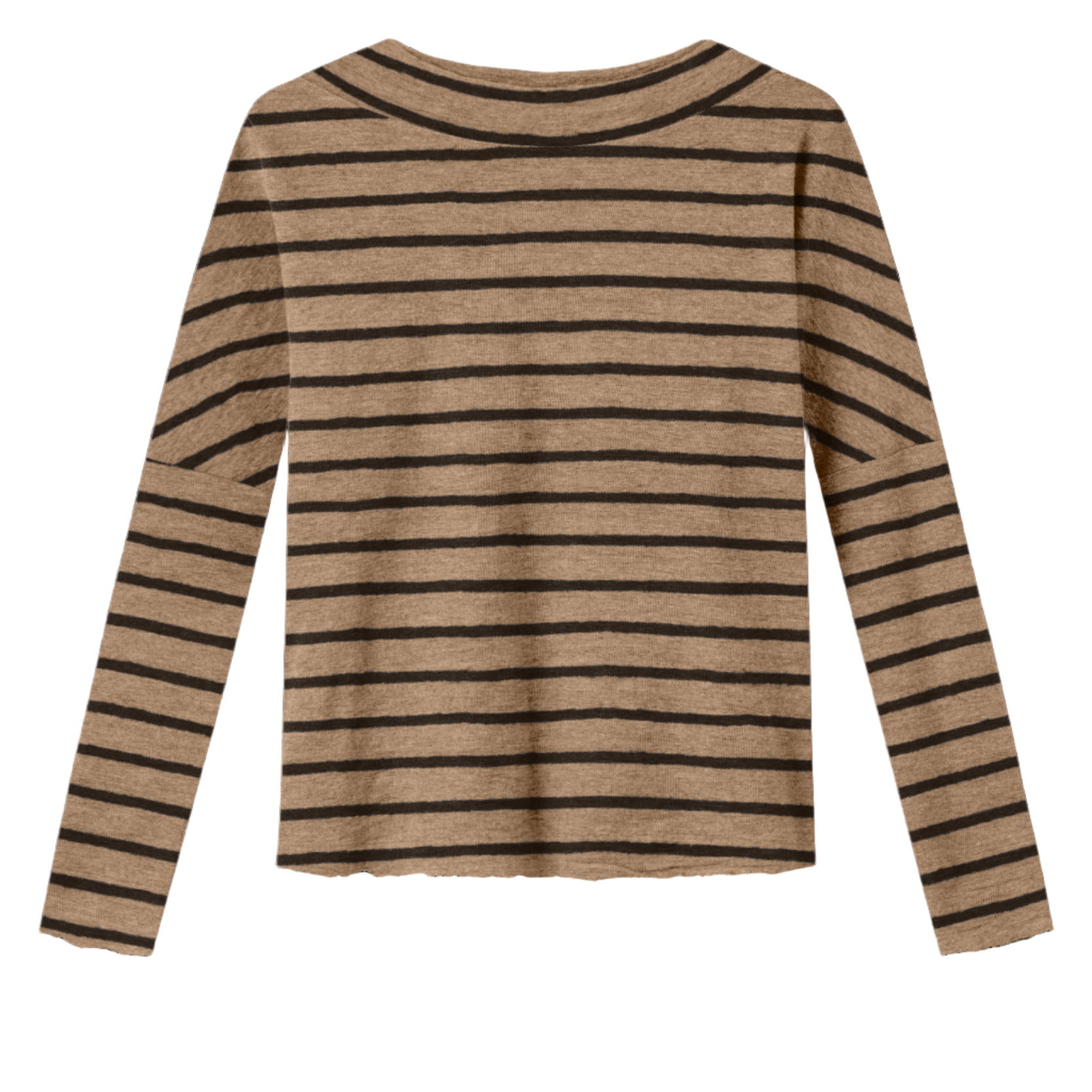 Oversize merinotröja med bred halsmudd - Light Camel Melange/Black Coffee Stripe