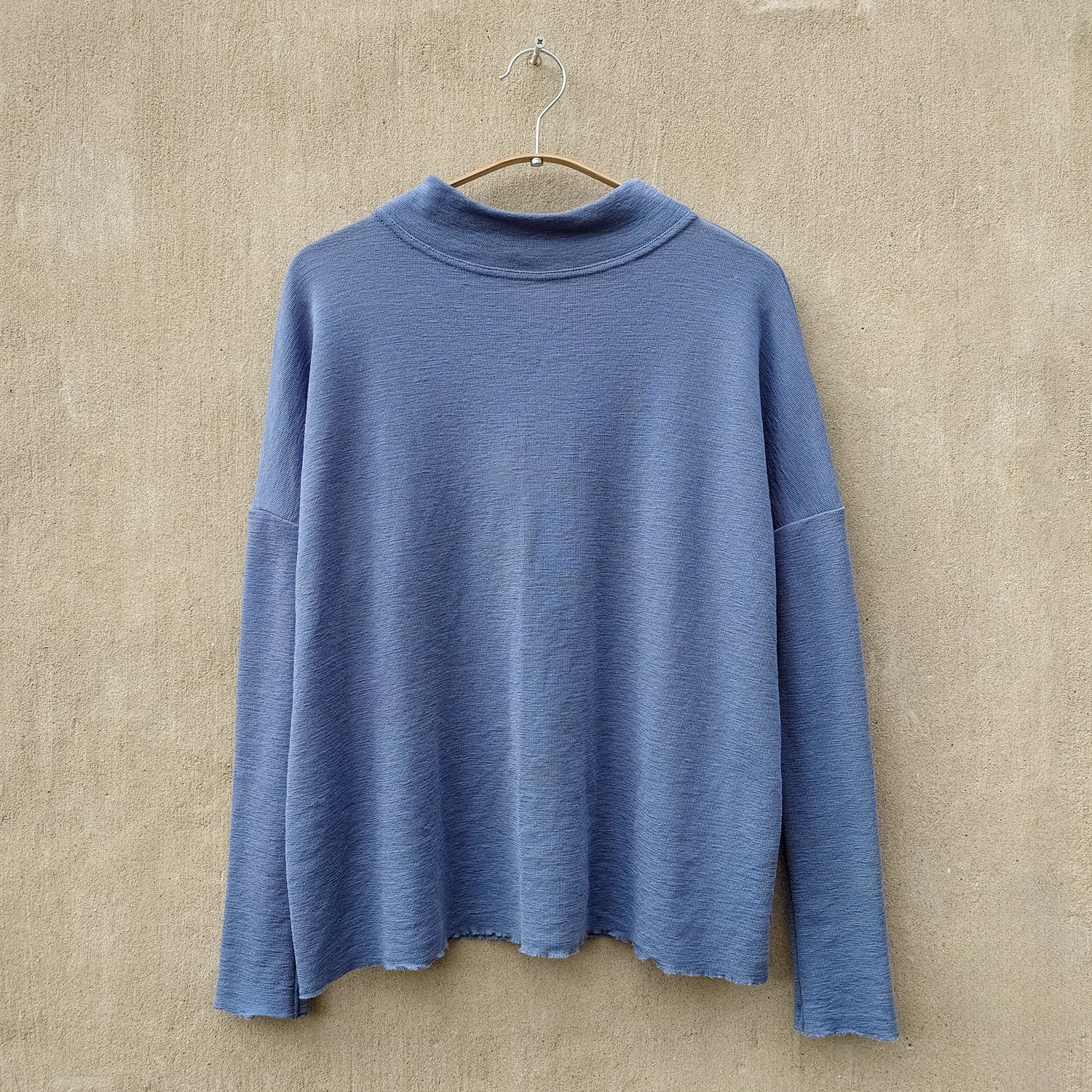 Oversize merinotröja med bred halsmudd - Stormy Sea