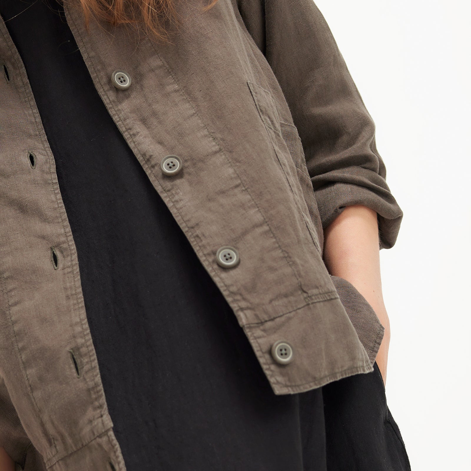 Plagget är färgat, tvättat och tumlat efter sömnad vilket innebär att linnet är mjukt och har ett lätt tvättat utseende.