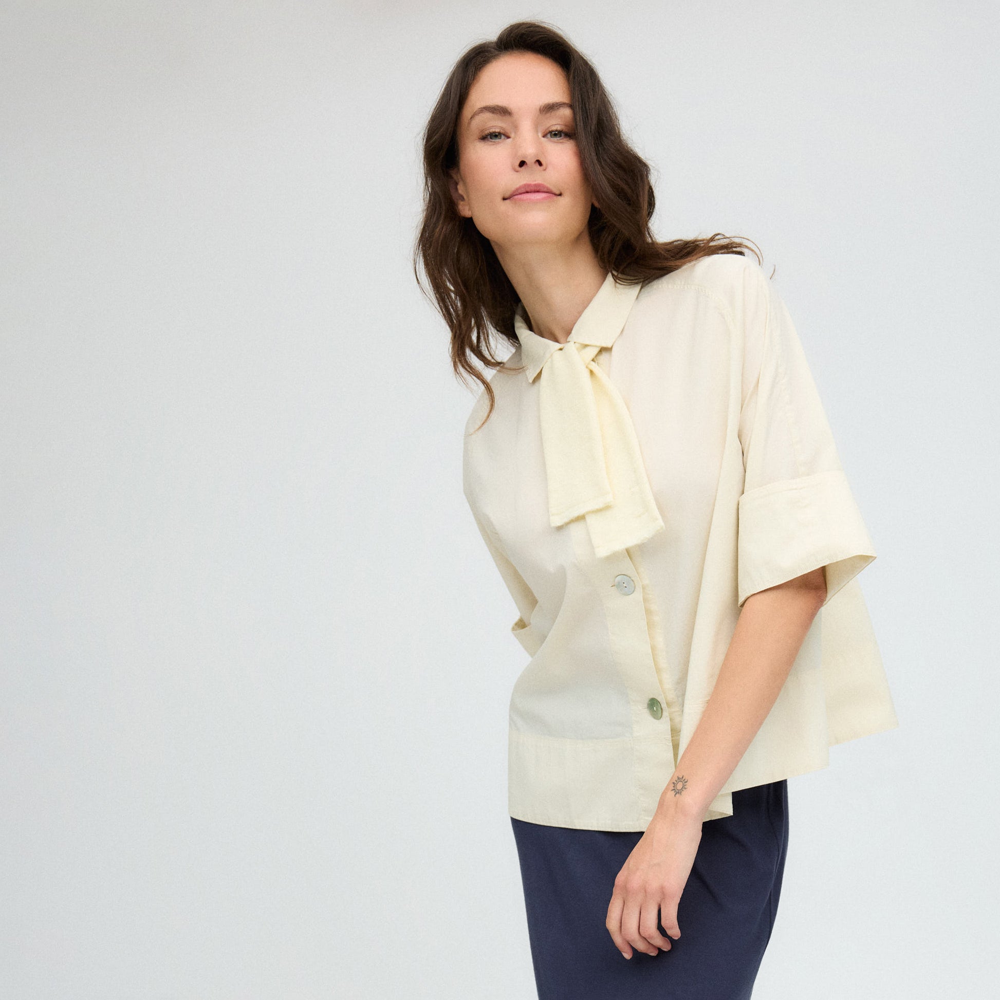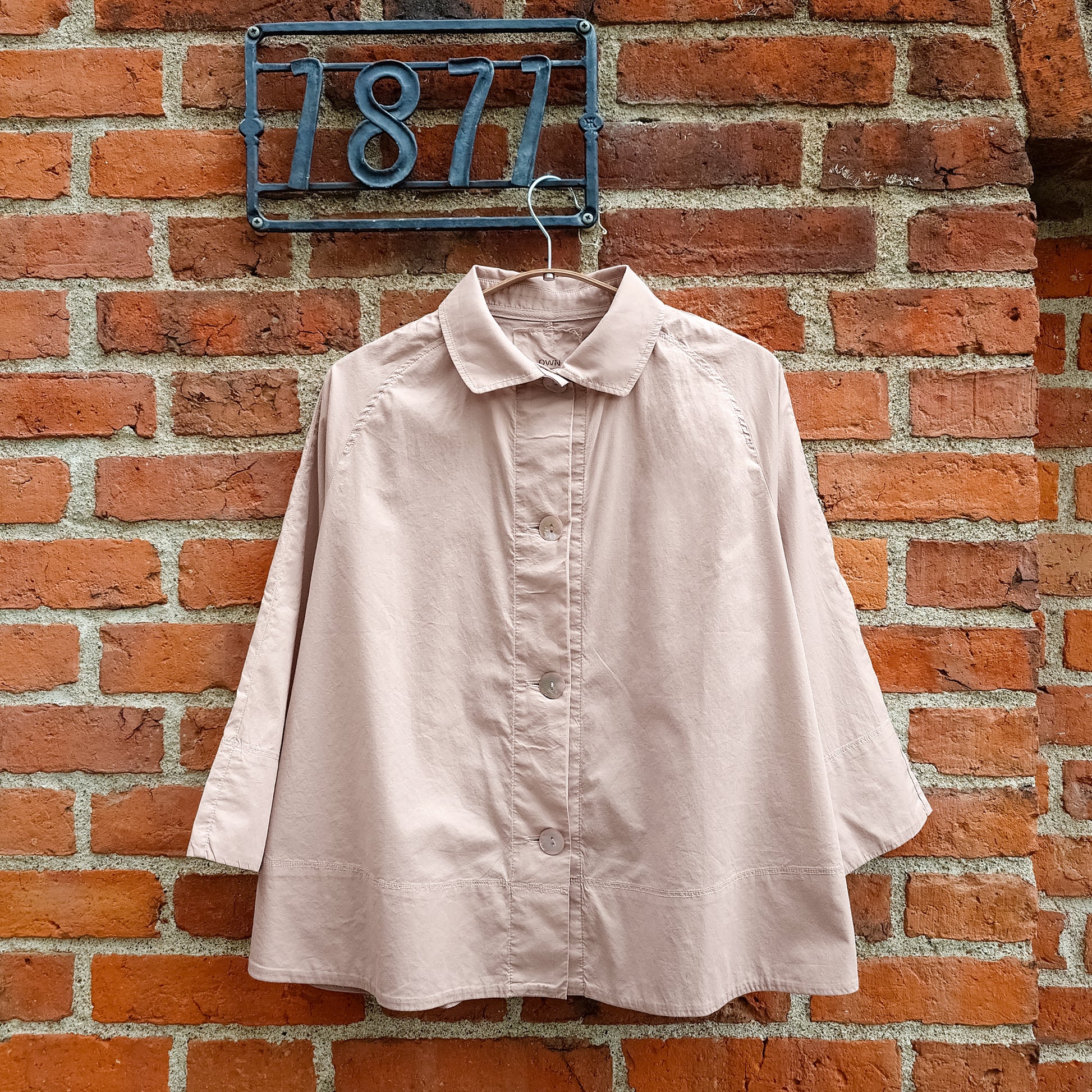 Fin välskräddad blus/jacka med krage och stora pärlemorknappar i mjuk och följsam bomullspoplin, från OWN. Bär den som en blus/skjorta eller över en t-shirt som en sval liten sommarjacka.