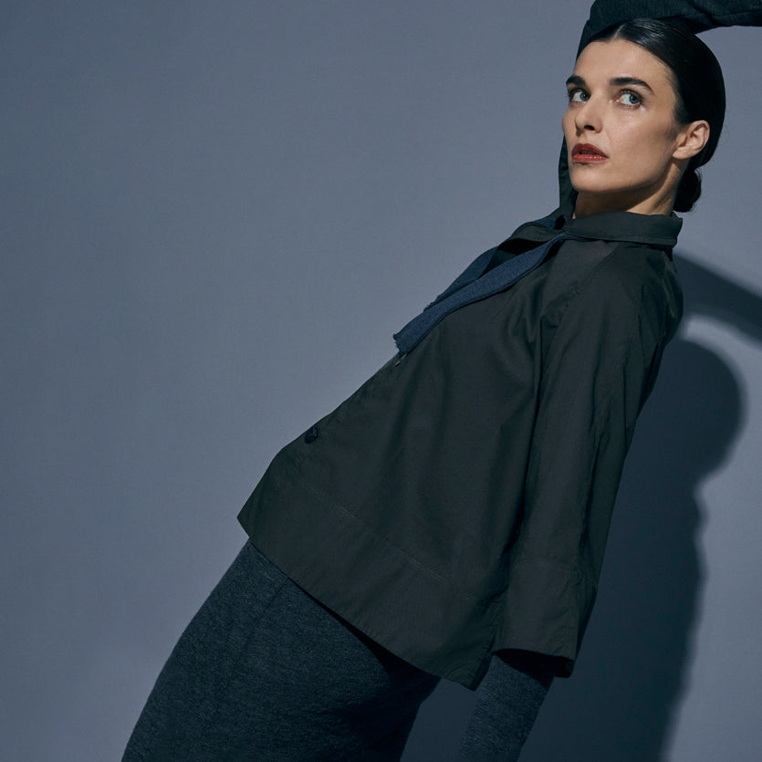 OWN poplinblus/jacka med stora pärlemorknappar - Black
