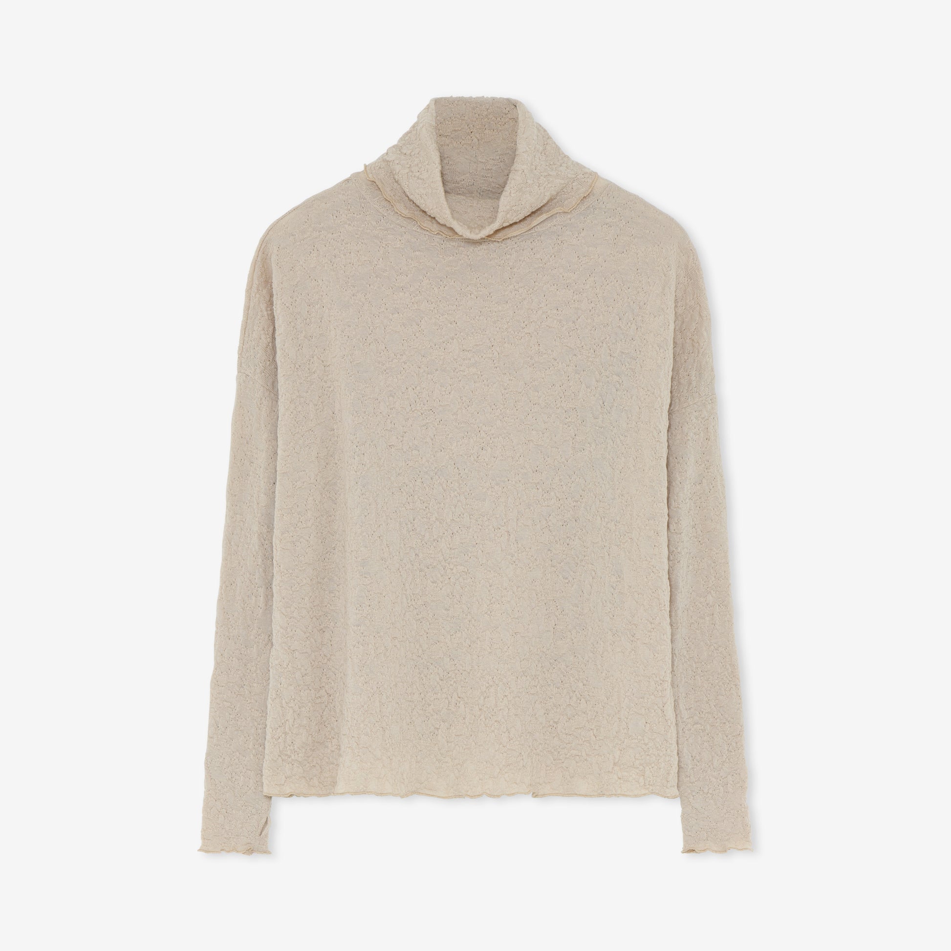 Oversize polotröja i tunn jacquardstickad 100% merinoull med bubblig struktur. En tröja som är både snygg och bekväm och som du lätt klär upp eller ner beroende på sammanhang.