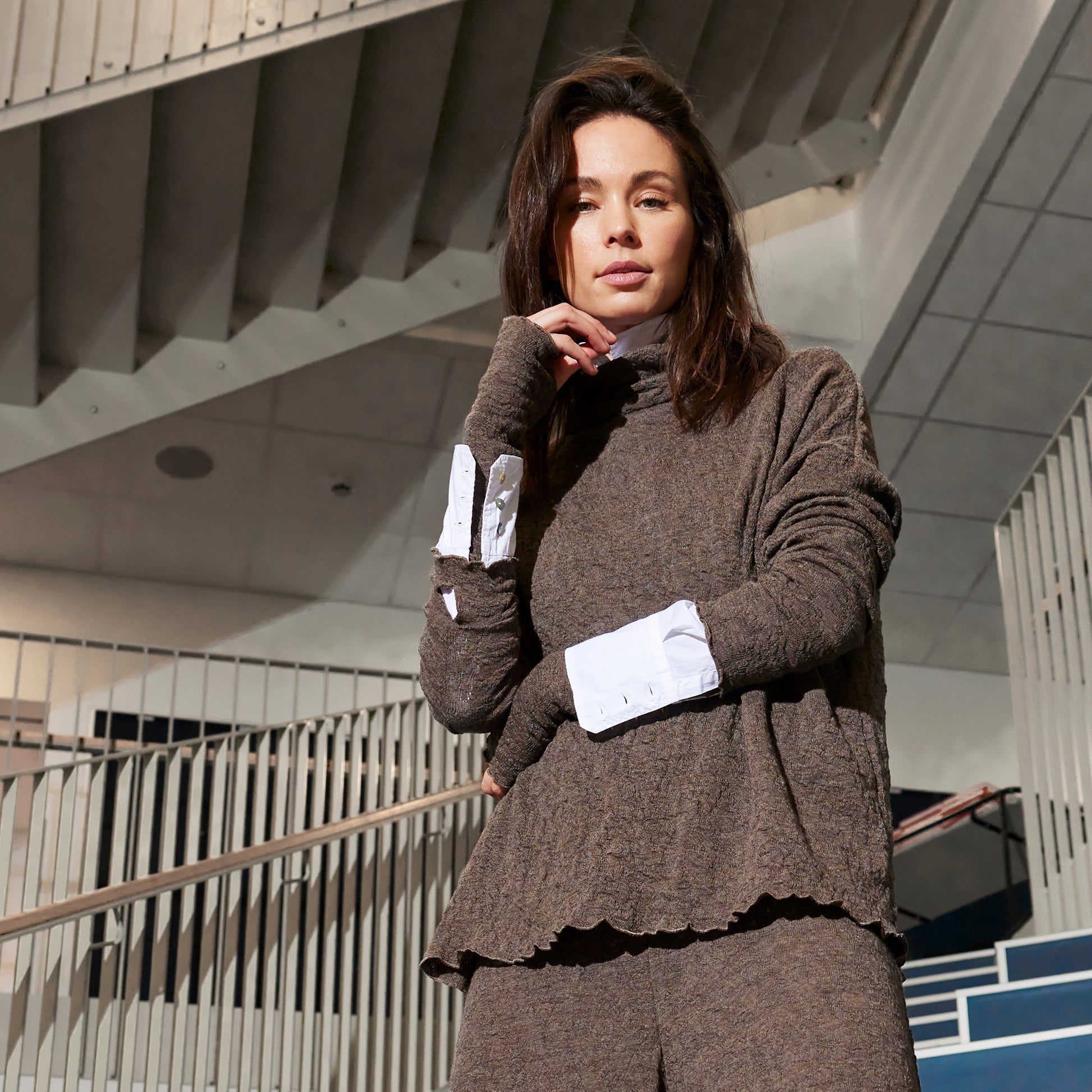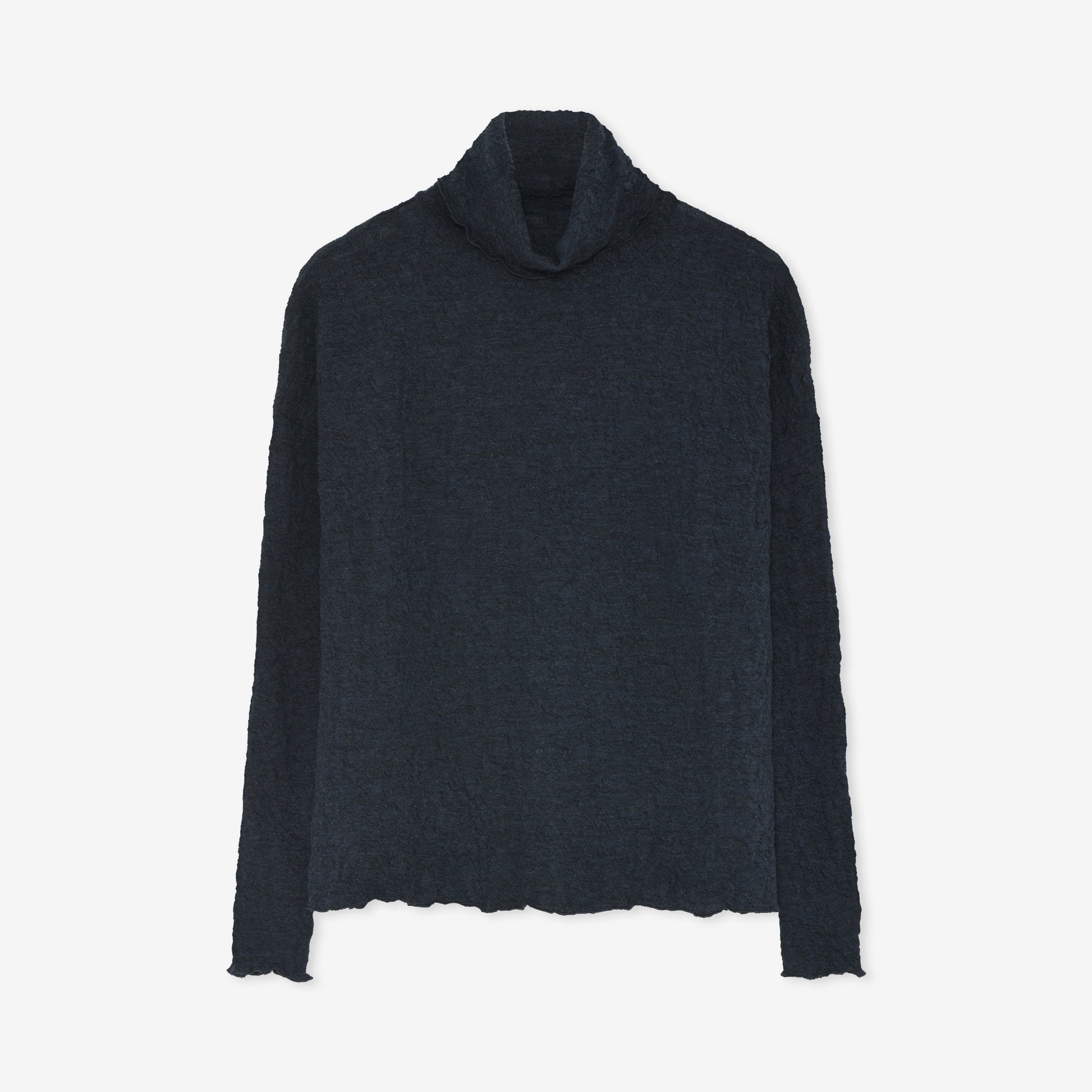 Oversize polotröja i tunn jacquardstickad merinoull med struktur. En tröja som är både snygg och bekväm, och som tack vare den fina strukturen även fungerar i lite "finare" sammanhang.