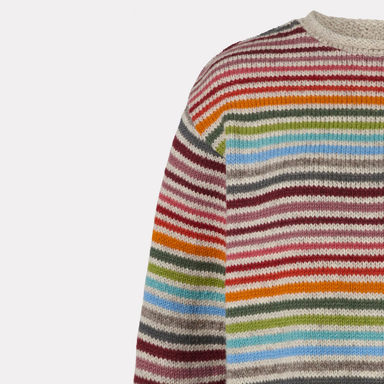 Klassisk stickad tröja i 100% ull med ränder i många färger - enkel att kombinera med det mesta i din garderob. Tillverkad i slitstark ull som håller värmen under kyliga dagar. Ett mångsidigt basplagg för höst- och vintergarderoben.