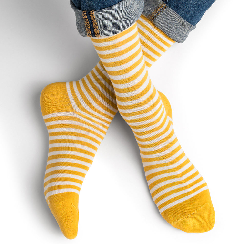 Randig strumpa i bomullsmix - Gul & Vit