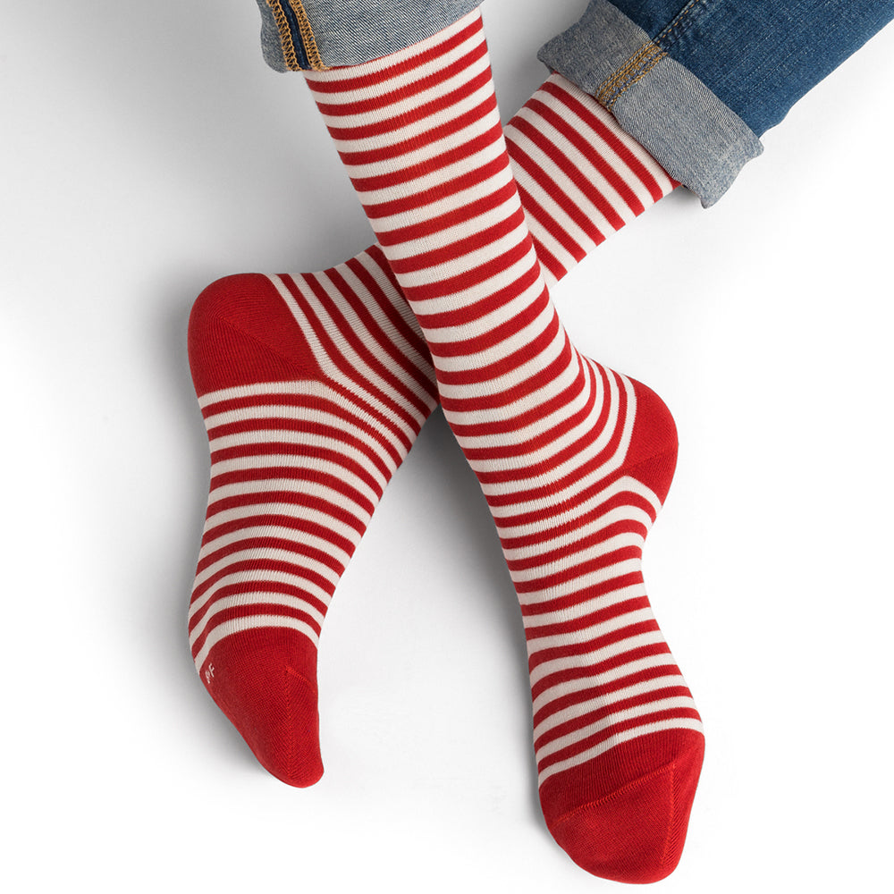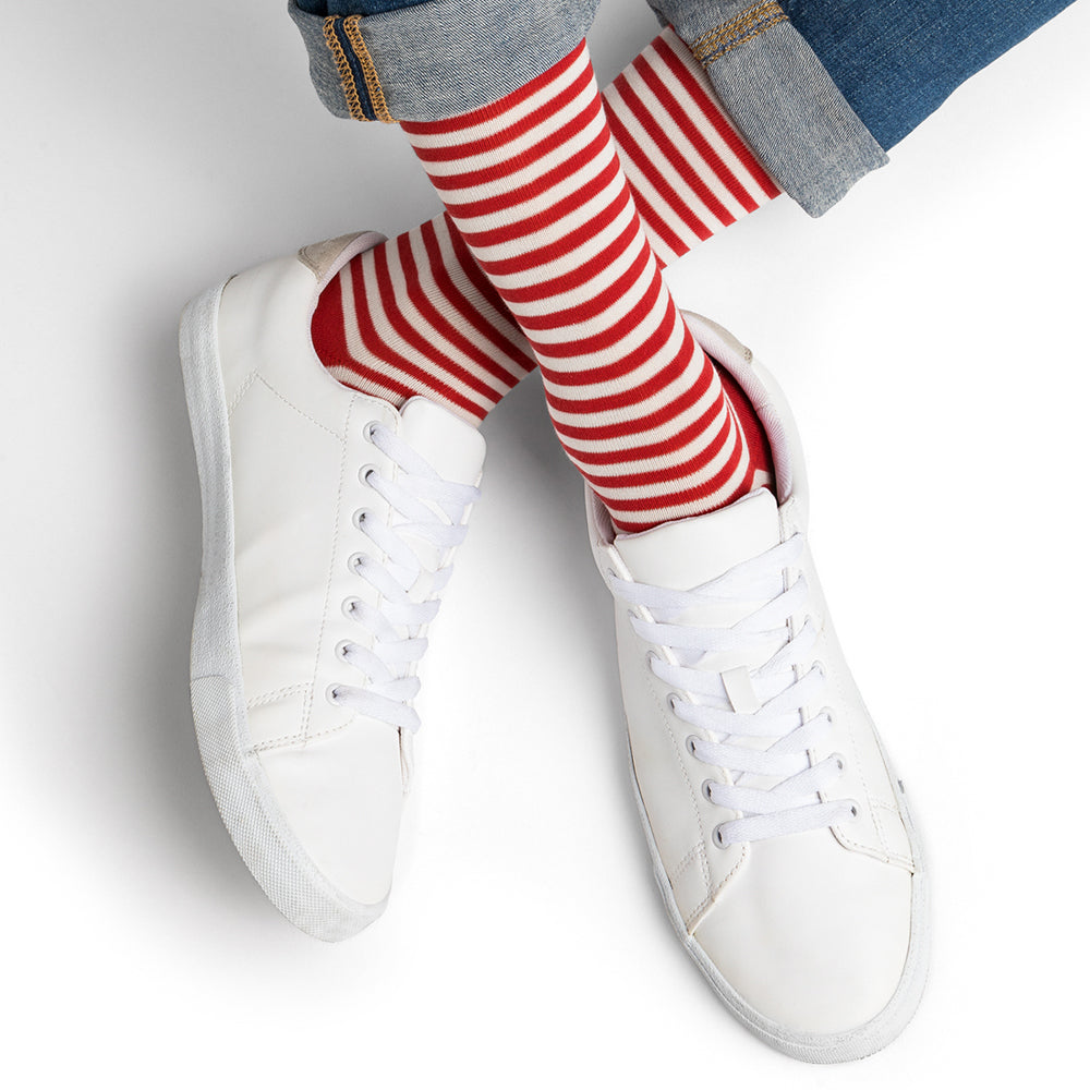 Randig strumpa i bomullsmix - Röd & Vit