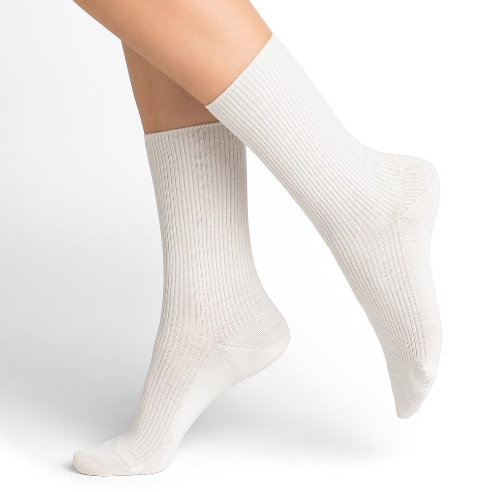Sköna ribbstickade tunna strumpor i bomullsmix, från Bleuforêt. Med polyamid för ökad slitstyrka.