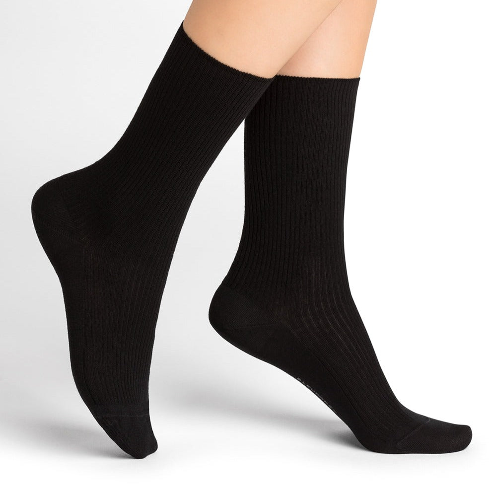Sköna ribbstickade tunna strumpor i bomullsmix, från Bleuforêt. Med polyamid för ökad slitstyrka.