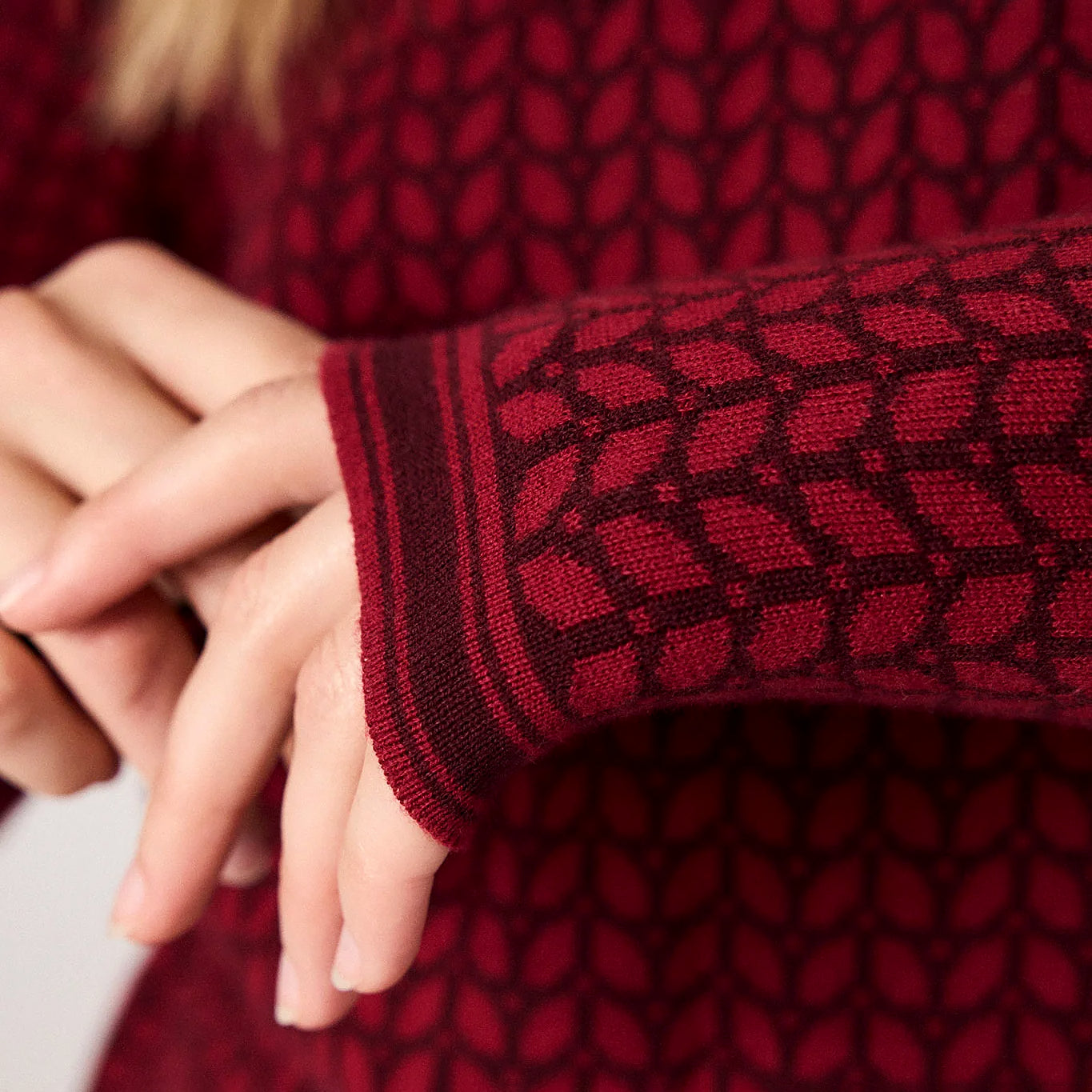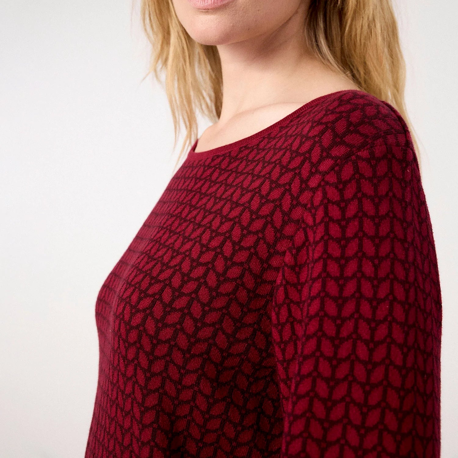 Tröja med abstrakt bladmotiv i fin jacquardstickning och rak passform. Tillverkad i GOTS-certifierad ekologisk bomull som ger en mjuk känsla och hållbar kvalitet.
