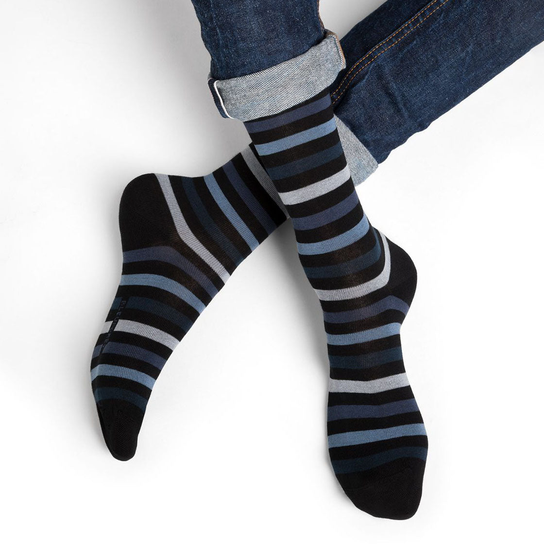 Strumpa i bomullsmix - STRIPES - Svart & blå