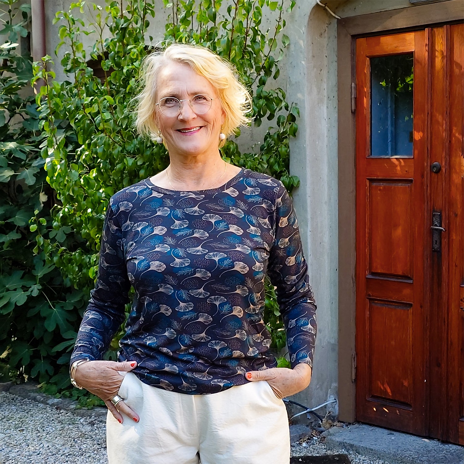 En mjuk och bekväm topp med vackert bladmönster. Kortare modell med rak och enkel passform.