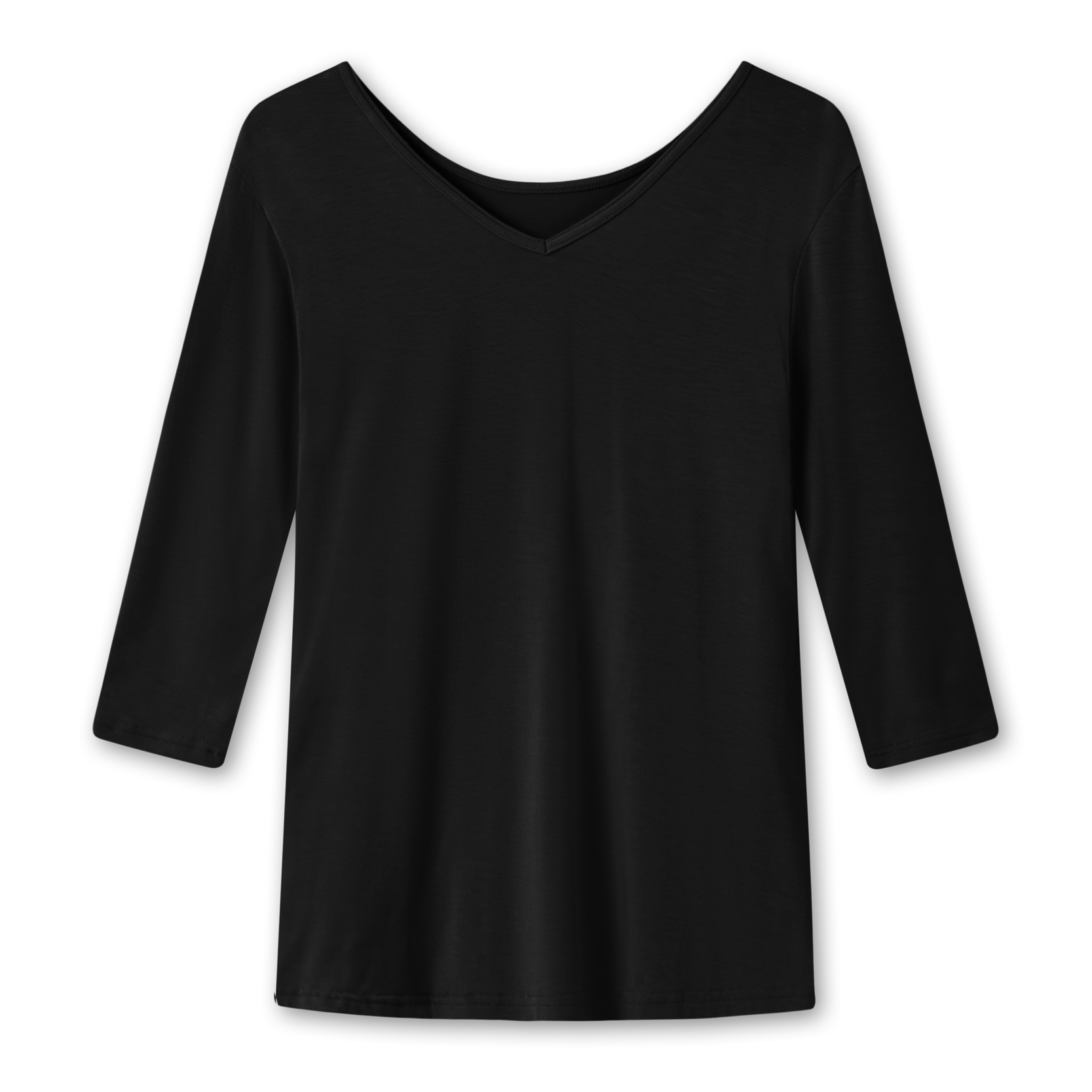 Vändbar topp med trekvartsärm i bambulyocell - Black