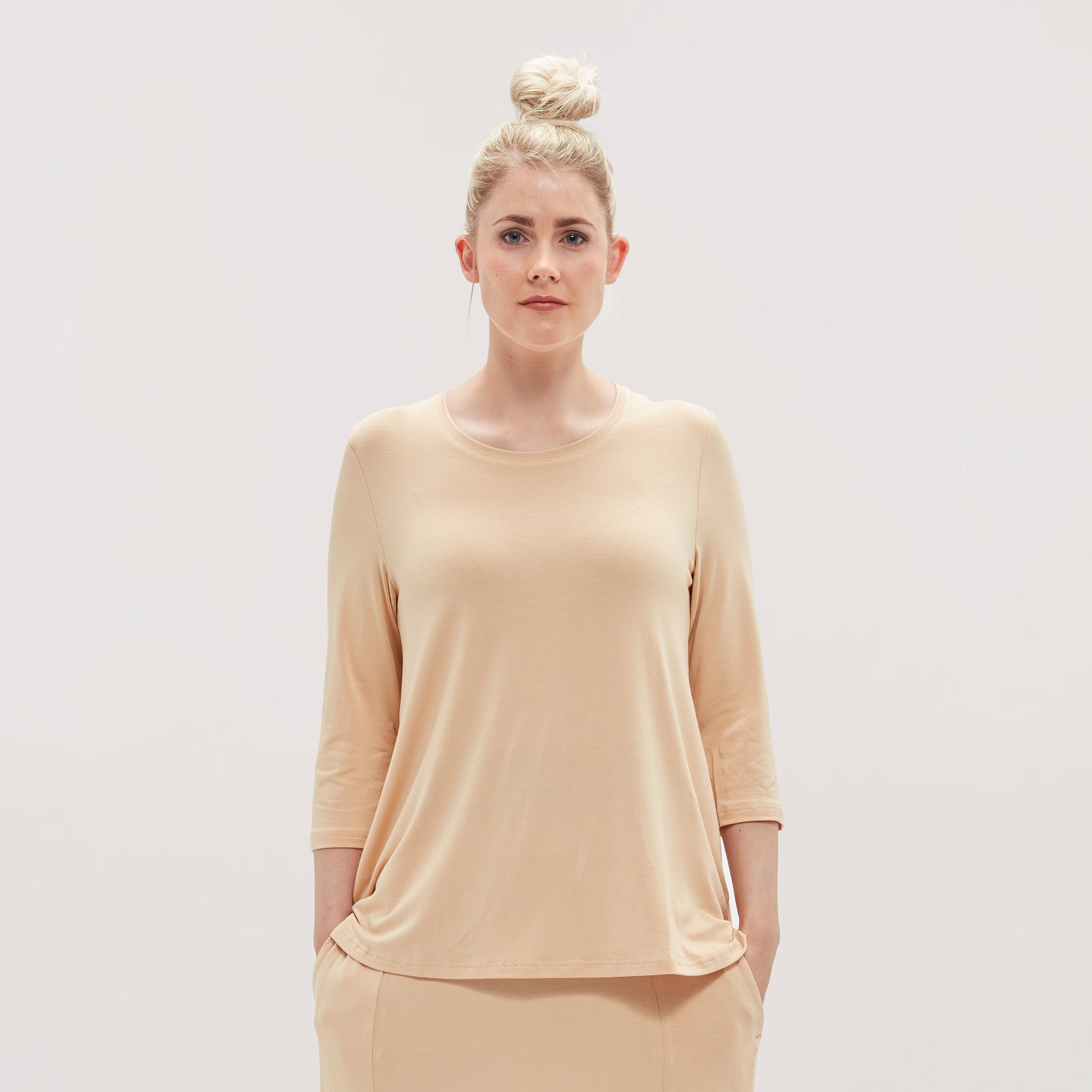 Klockad topp med trekvartsärm i bambulyocell - Pink